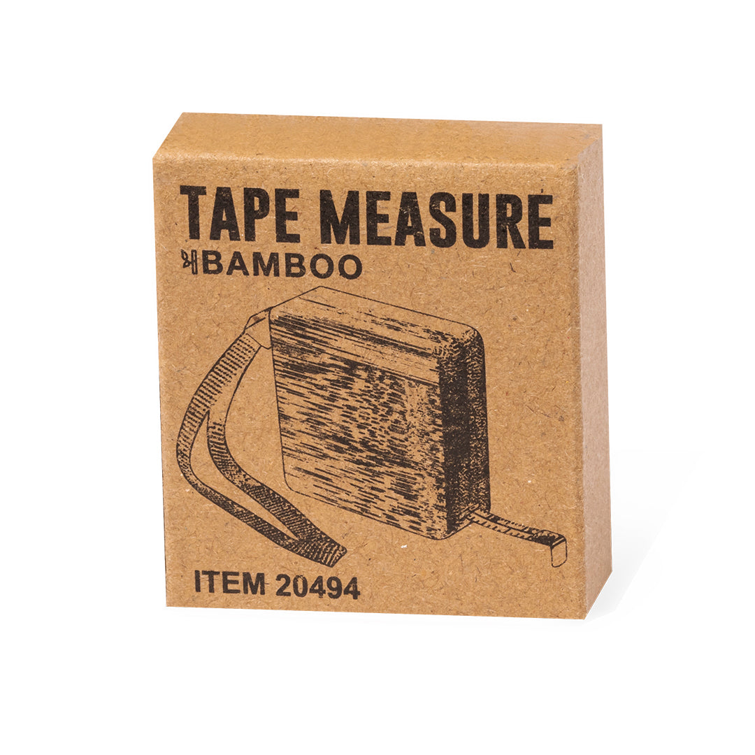 Flexómetro 1 m fabricado en bambú, con cuchilla metálica en centí metros y pulgadas. Con cinta para transporte y presentado en caja de diseño kraft. Materiales como el bambú fomentan la utilización de materias primas naturales reduciendo las emisiones contaminantes. Además, el bambú proviene de una planta de gran resistencia y versatilidad, con crecimiento y regeneración rápida, siendo una excelente alternativa al uso de madera tradicional.