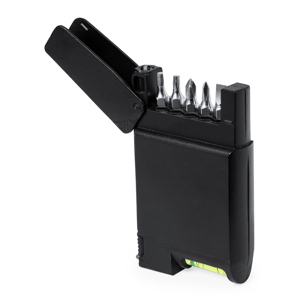 Flexómetro multiherramienta 3m, fabricado en resistente combinación de bambú y ABS. Con 7 funciones: cinta métrica de 3 metros, destornillador con diversas puntas (planas, philips y allen); y nivel integrado. De elegante diseño en negro, con detalles en bambú y viene presentado individualmente en caja de diseño kraft.Materiales como el bambú fomentan la utilización de materias primas naturales, reduciendo las emisiones contaminantes. Proviene de una planta de gran resistencia y versatilidad, con crecimiento y regeneración rápidos, siendo una excelente alternativa al uso de madera tradicional.
