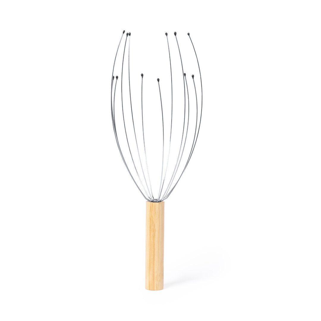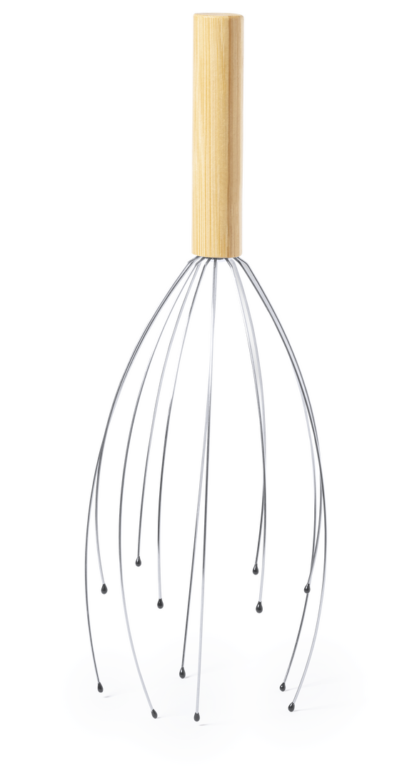 Masajeador de línea nature, con mango en bambú y patas metálicas con suaves terminaciones de goma y efecto más que relajante. Presentación en caja individual de diseño kraft.