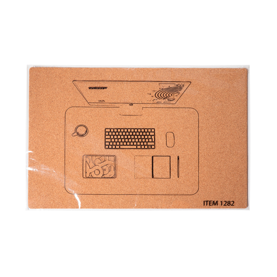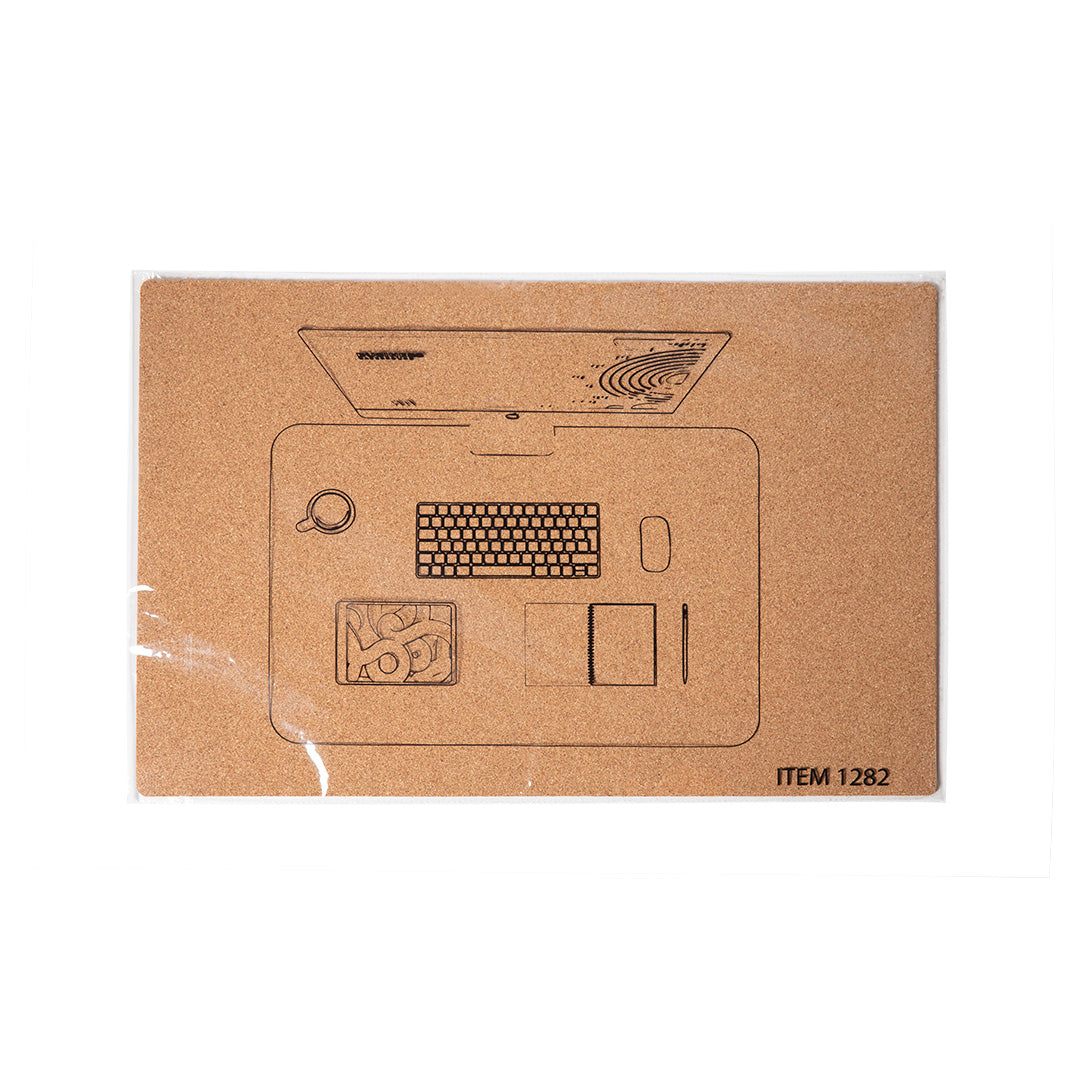 Alfombrilla sobremesa de línea nature fabricada en corcho natural. De tamaño extra grande para dar cabida a los diferentes gadgets del escritorio.