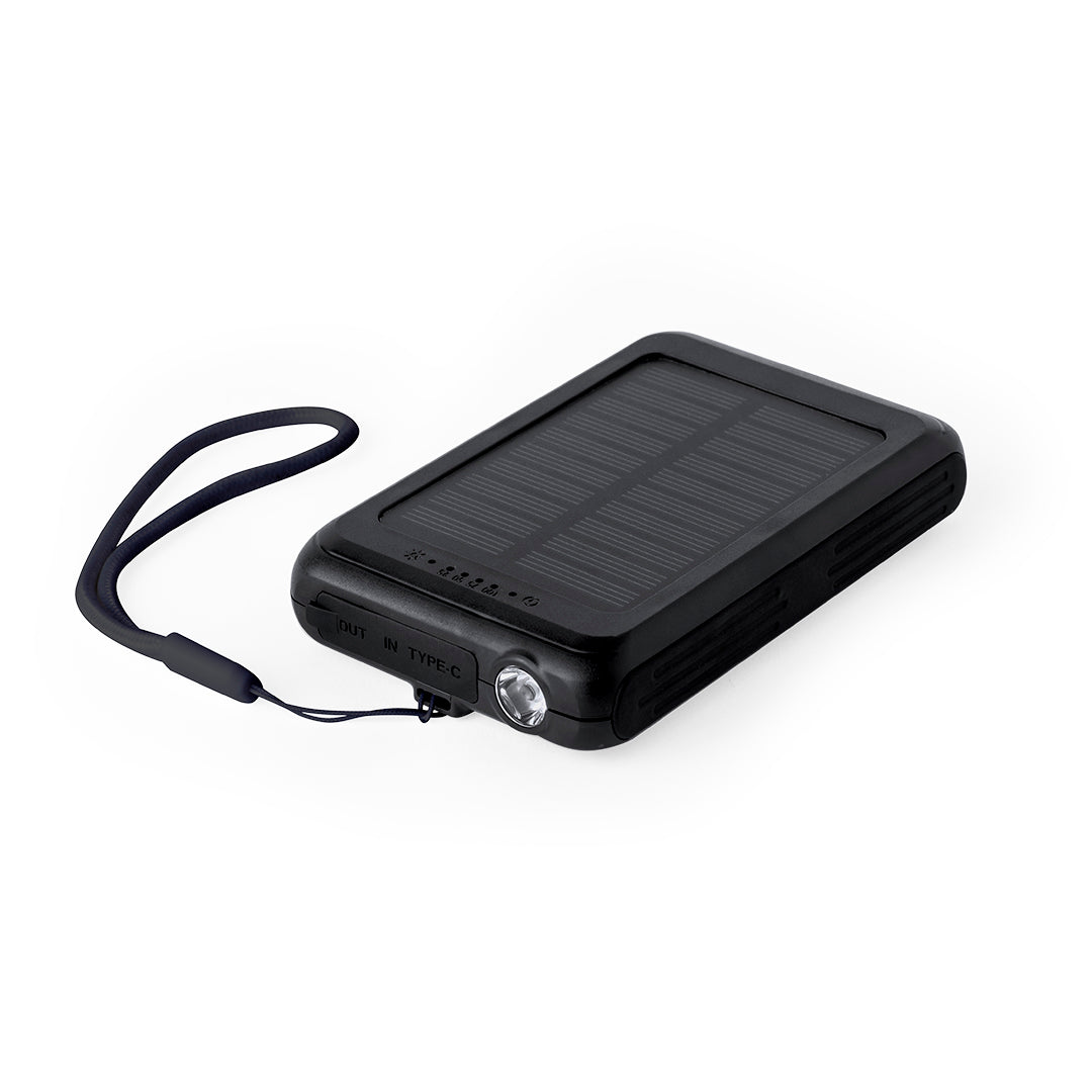 Batería auxiliar externa de recarga solar y de gran capacidad de carga -5.000 mAh-. Con cargador inalámbrico integrado 5W y fijación magnética Magsafe, permitiendo usar el dispositivo mientras se está cargando y compatible con dispositivos equipados con tecnología de carga inalámbrica Qi. Además, cuenta con una luz LED con dos posiciones de luz, fija e intermitente. Fabricada en resistente ABS de color negro, con conector de entrada/salida Tipo C + 1 salida USB + 1 entrada Micro USB. Presentada en atractiva caja individual de diseño.Las capacidades mostradas en todas nuestras baterías auxiliares externas son reales, incorporando todas ellas baterías de grado A y no recicladas, con una vida útil de al menos 500 ciclos de carga y según normativa CE. Además, están fabricadas conforme a los estándares RoHS y en cumplimiento con los siguientes requisitos de seguridad:Sistema de protección contra sobrecarga del power bank.Sistema de protección contra descarga completa que proporciona una mayor durabilidad del power bank.Sistema de bloqueo para evitar cortocircuitos.Sistema de transferencia de carga constante, acorde con la capacidad del dispositivo de destino.