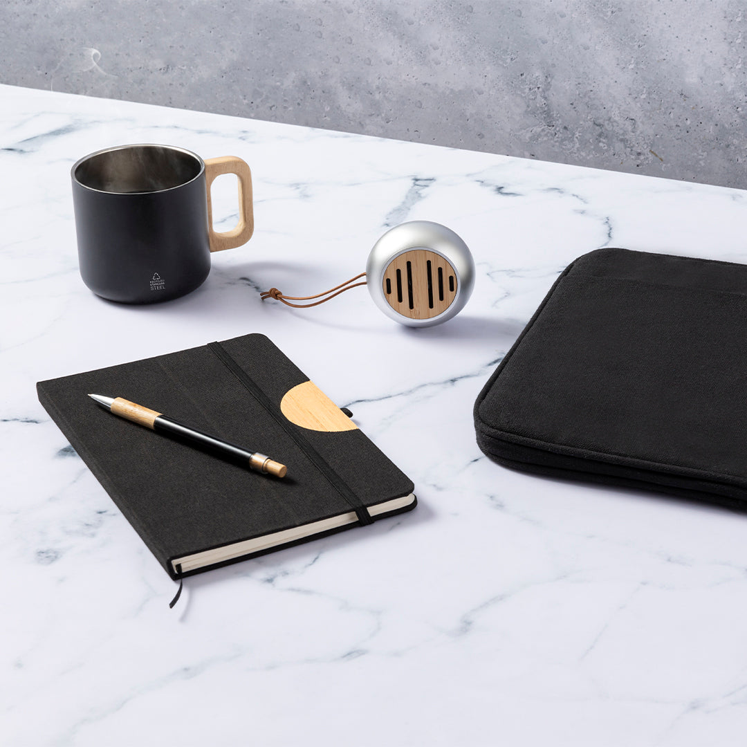 Original altavoz Bluetooth de tamaño compacto y 3W de potencia. Fabricado en materiales eco, combinado un cuerpo en resistente Aluminio Reciclado y una rejilla en bambú. Batería de litio de 300mAh, recargable mediante cable Tipo C (incluido). Con botón ON/OFF y luz LED de estado de carga. Con logotipo Aluminio Reciclado y cordón para un fácil transporte. Presentado en caja individual de diseño kraft, con manual de instrucciones en español e inglés.El Aluminio Reciclado es un material con posibilidades de reciclaje casi infinitas, sin perder sus propiedades originales y consumiendo menos energía en este proceso.Certificación GRS (Global Recycled Standard / Estándar de Reciclaje Global), que garantiza el origen reciclado del material usado para fabricar el producto.Materiales como el bambú fomentan la utilización de materias primas naturales, reduciendo las emisiones contaminantes. Proviene de una planta de gran resistencia y versatilidad, con crecimiento y regeneración rápidos, siendo una excelente alternativa al uso de madera tradicional.Fabricado conforme a los estándares RoHS y en cumplimiento con los siguientes requisitos de seguridad:Sistema de protección contra sobrecalentamiento.Sistema de protección contra sobrecarga.Sistema de bloqueo para evitar cortocircuitos.