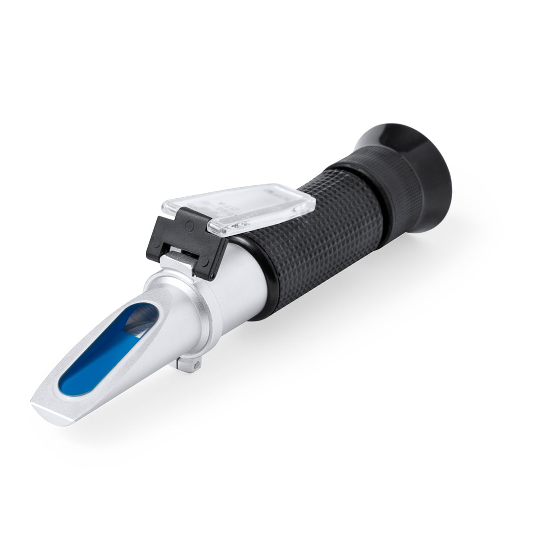 Refractómetro manual portátil, especialmente diseñado para el control de los grados Brix. Funciona vertiendo una gota en el compartimento designado, bajando a continuación la tapa transparente y mirando a través del visor, a la vez que se ajusta el botón. Portátil y presentado en un resistente estuche de transporte con cierre de seguridad y accesorios interiores. Con instrucciones en español e inglés. Presentado en caja de diseño kraft.Contenido: -Medidor -Estuche de transporte con interior de espuma -Pipeta -Destornillador -Paño limpiador