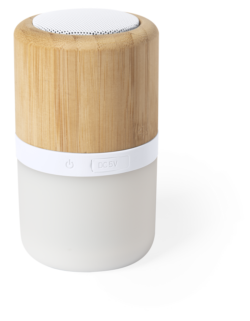 Altavoz de línea nature, con tecnología Led Inteligente y conexión Bluetooth 5.0. Hecho en bambú procedente de cortes naturales. 3W de potencia, con dos posiciones de luz multicolor y recargable mediante cable USB -incluido-. Presentado en atractiva caja de diseño eco.