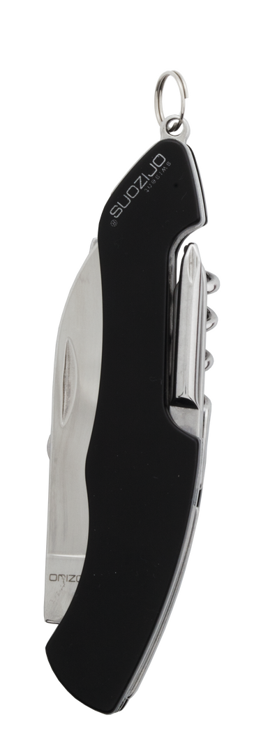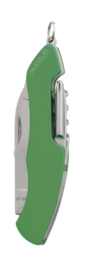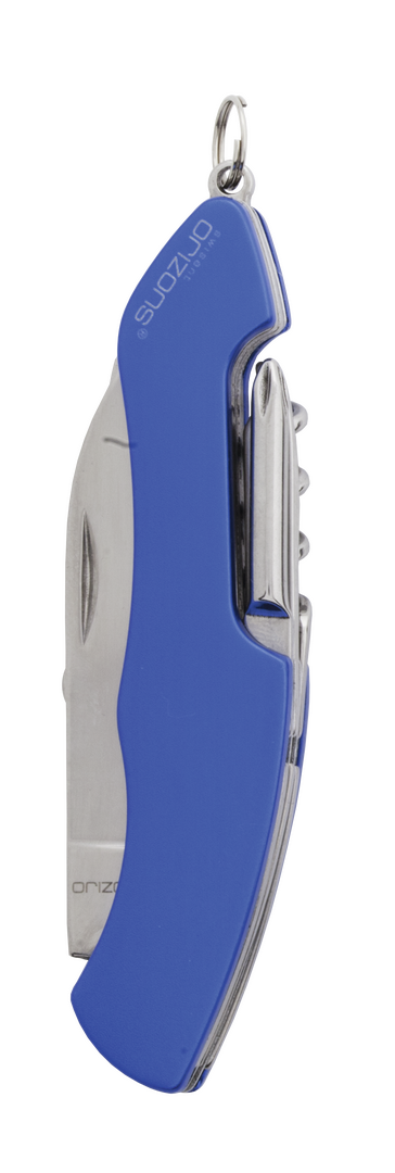 Navaja multiusos de orizons con accesorios de acero inox de 10 funciones y mango de aluminio en vivos colores. Con navaja, tijeras, abrelatas, abrebotellas con destornillador plano, destornillador de punta de estrella, punzón con lima y sacacorchos. Con anilla para llavero y presentada en atractiva caja de diseño con logotipo de la marca.
