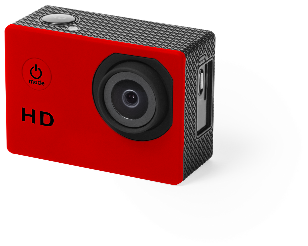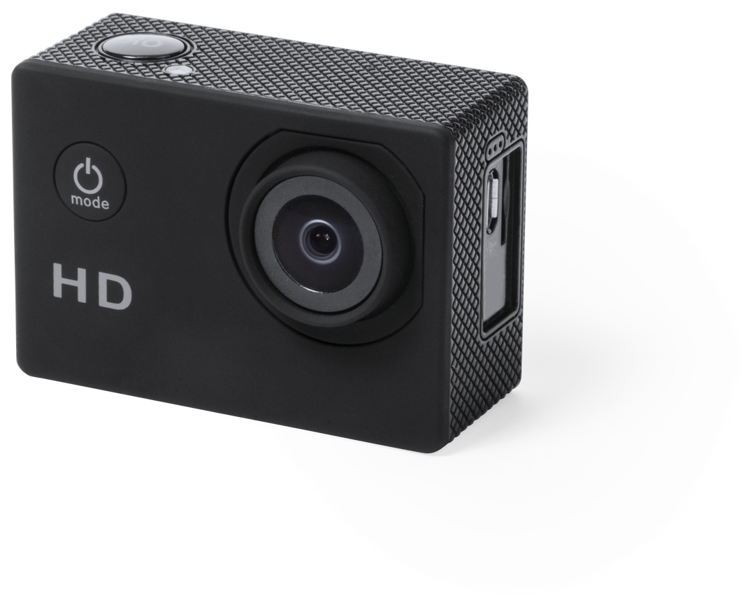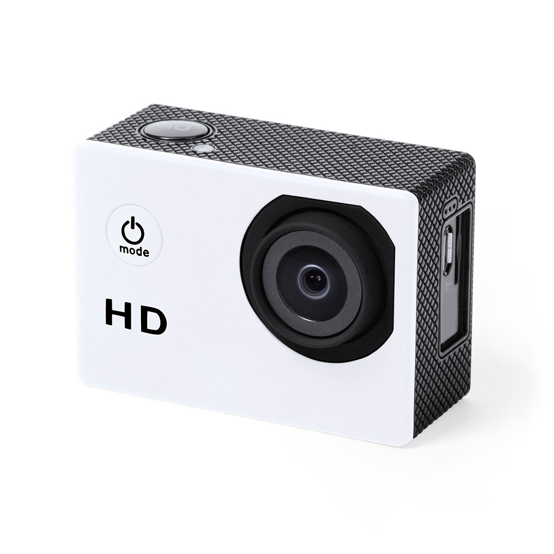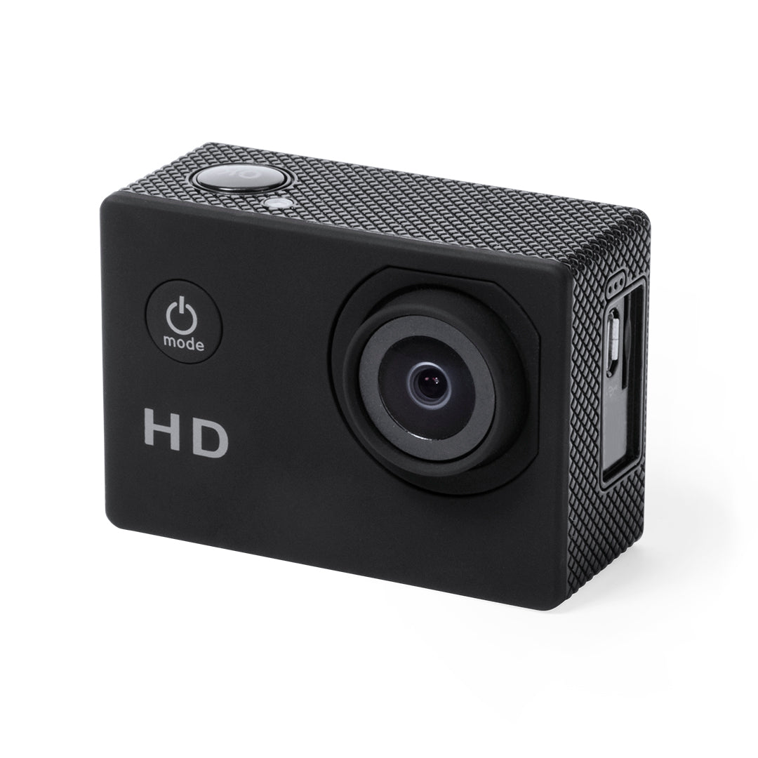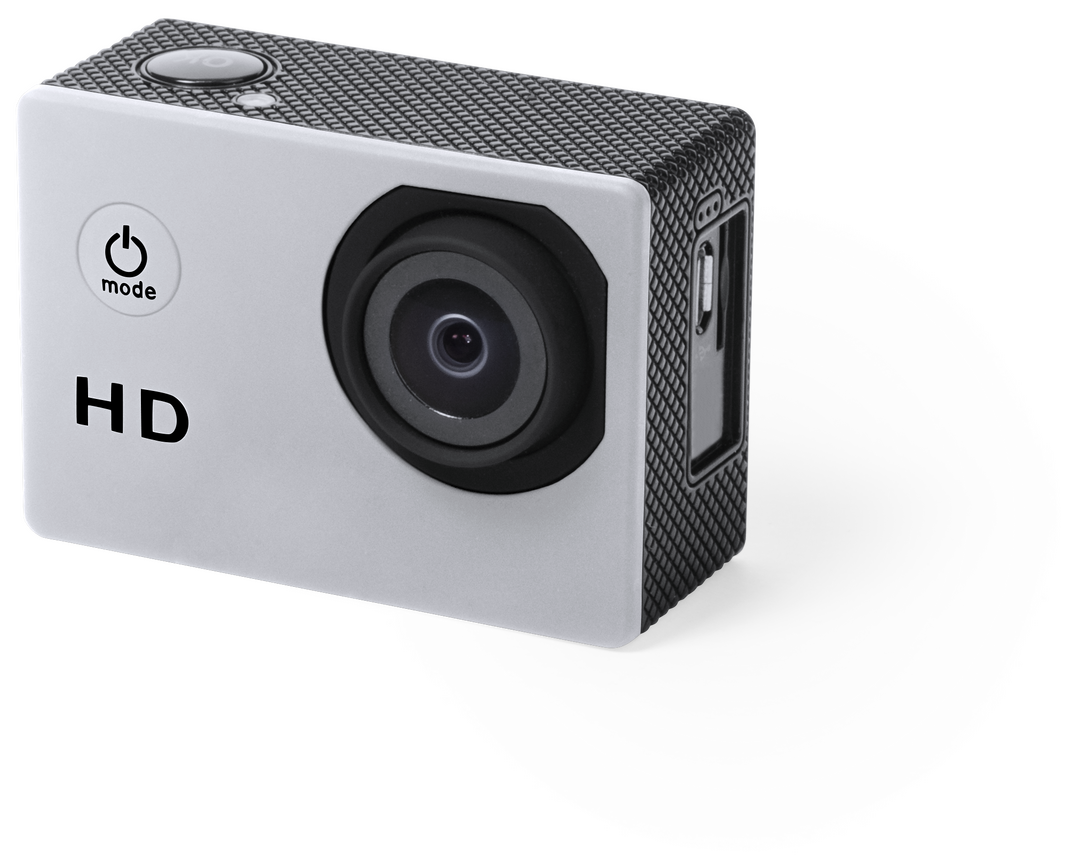 Cámara deportiva de alta calidad de captura de vídeo HD 720p, de diseño compacto y resistente, especialmente diseñada para uso intensivo. Incluye carcasa sumergible hasta 30m de profundidad y multitud de accesorios para ajuste en casco, manillar o cinturón, así como correas ajustables para cabeza y torso o un adaptador giratorio de 360º. La versatilidad y resistencia de esta cámara deportiva la convierten en el gadget perfecto para capturar, con una calidad excepcional, cualquier actividad deportiva. Con función cámara de fotos Full HD 1080p, ranura para tarjetas micro SD de hasta 32 GB de capacidad, sistema multilenguaje, y recargable mediante cable microUSB -incluido-. Presentada en atractiva caja de diseño.