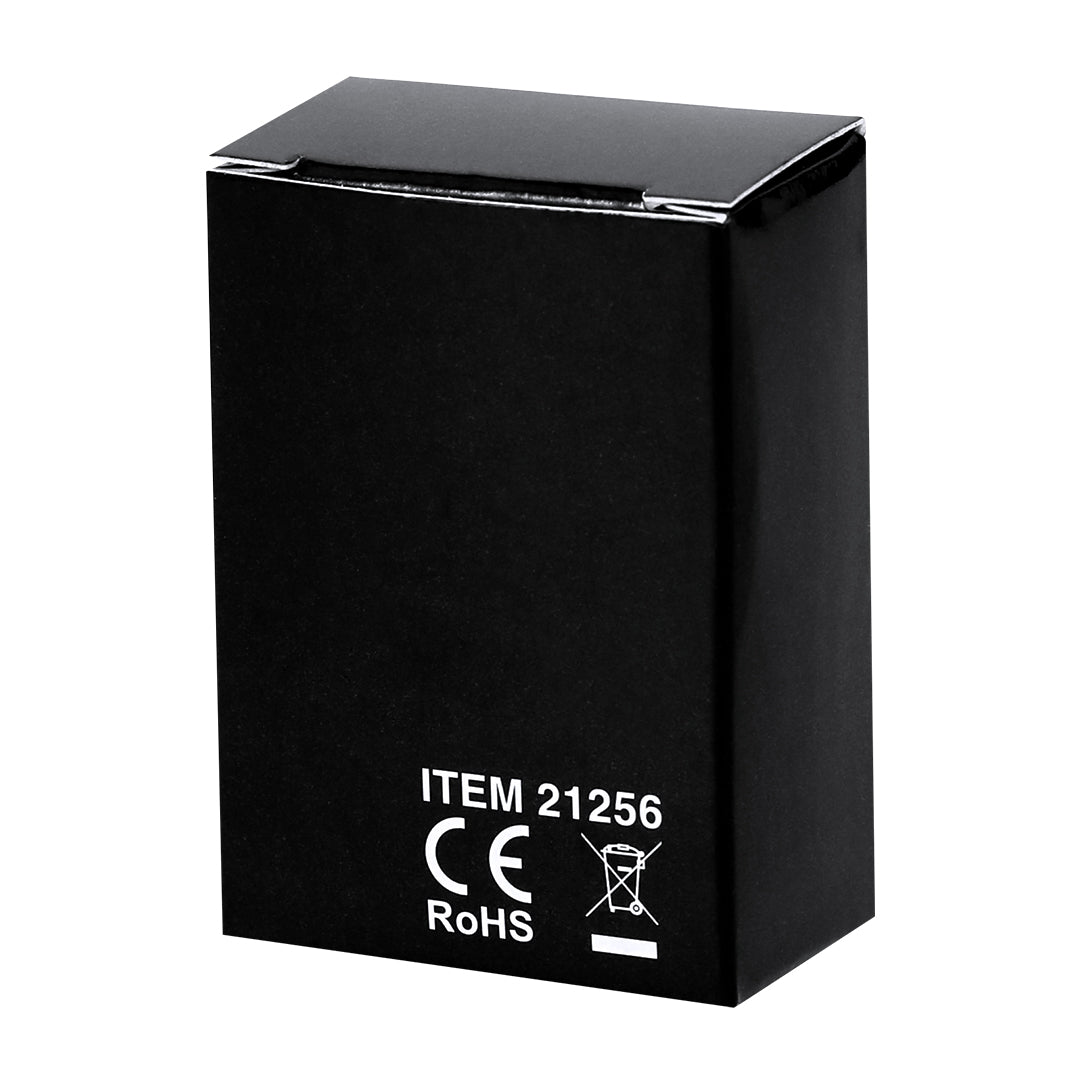 Práctica lupa llavero con aumento 20x y luz LED integrada. Fabricada en resistente ABS de color negro y fácil de transportar por su reducido tamaño. Alimentada por 1 pila de botón (incluida) y presentada en caja individual de cartón negra.