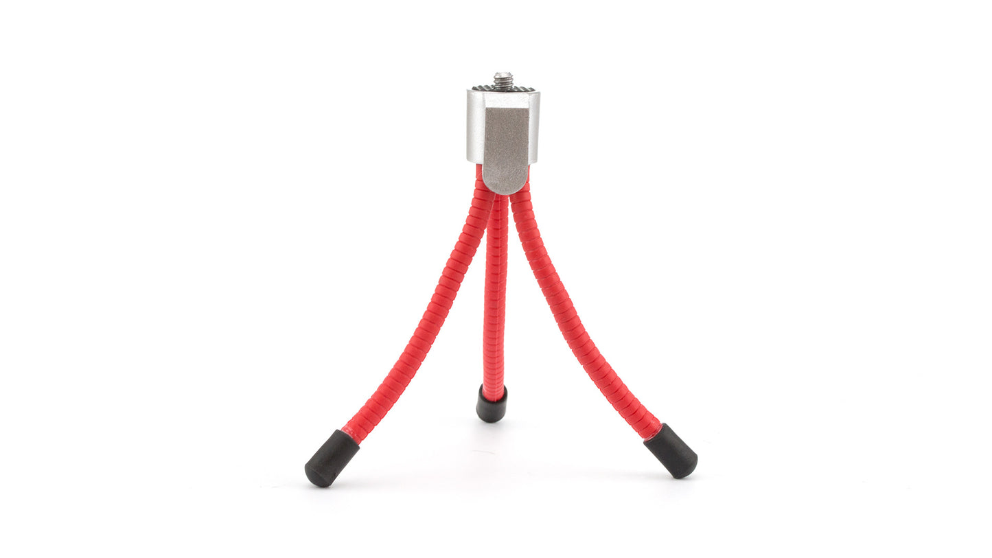 Trípode para cámaras con tornillo de ajuste universal y patas flexibles con acabado en goma antideslizante para fijación en todo tipo de superficies.Presentado en caja individual.
