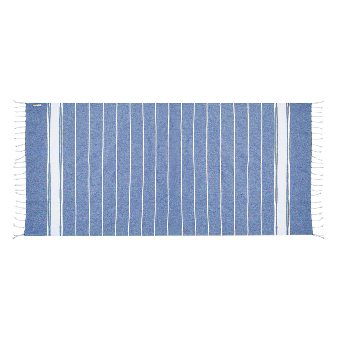 Suave pareo toalla en 100% algodón reciclado de 180g/m2. Disponible en variada gama de colores en tono bicolor. Logotipo en etiqueta lateral. Presentado individualmente en bolsa.