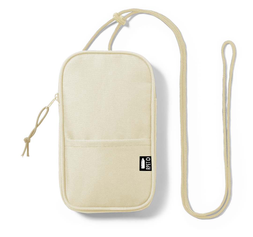 Clásico portamóvil de línea nature, fabricado en resistente poliéster 600D RPET. Compartimento principal con cierre de cremallera invisible a juego y tirador de cordón. Con cinta bandolera a juego, bolsillo exterior, e interior forrado. Disponible en variada gama de colores, con etiqueta RPET en bolsillo exterior. El material RPET se elabora a partir de plástico reciclado, para así fomentar la reutilización de residuos plásticos y ayudar a la sostenibilidad del planeta.