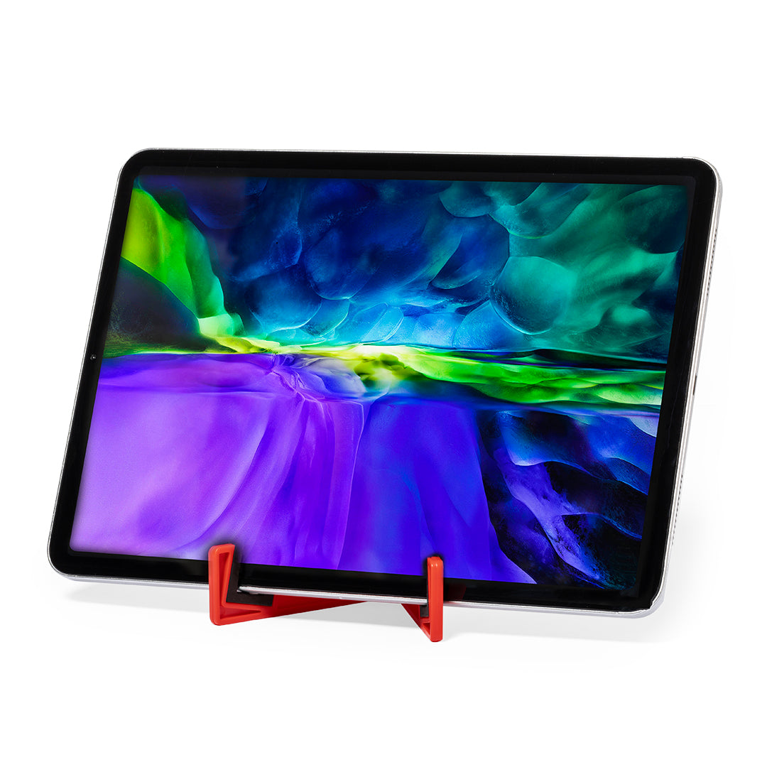 Soporte para dispositivo móvil de patas plegables y topes anideslizantes en PVC. En atrevidos colores y especialmente diseñado para marcaje en tampografía.