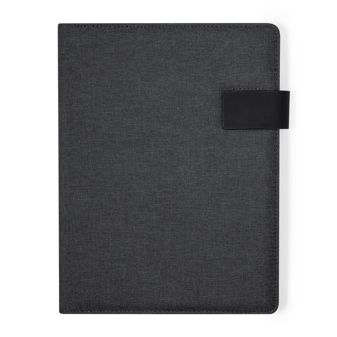 Práctica carpeta fabricada en RPET 600D. Con un interior eficiente que incluye compartimentos para 4 tarjetas, 3 bolsillos elásticos para dispositivos móviles, y un amplio espacio para folios. Este organizador también presenta un práctico soporte para bolígrafos y un bloc de notas con 20 hojas a rayas. Puede mantenerse cerrado de manera segura gracias a su solapa imantada. Disponible en elegantes colores y presentado individualmente en bolsa reciclada. El material RPET se elabora a partir de plástico reciclado, para así fomentar la reutilización de residuos plásticos y ayudar a la sostenibilidad del planeta.