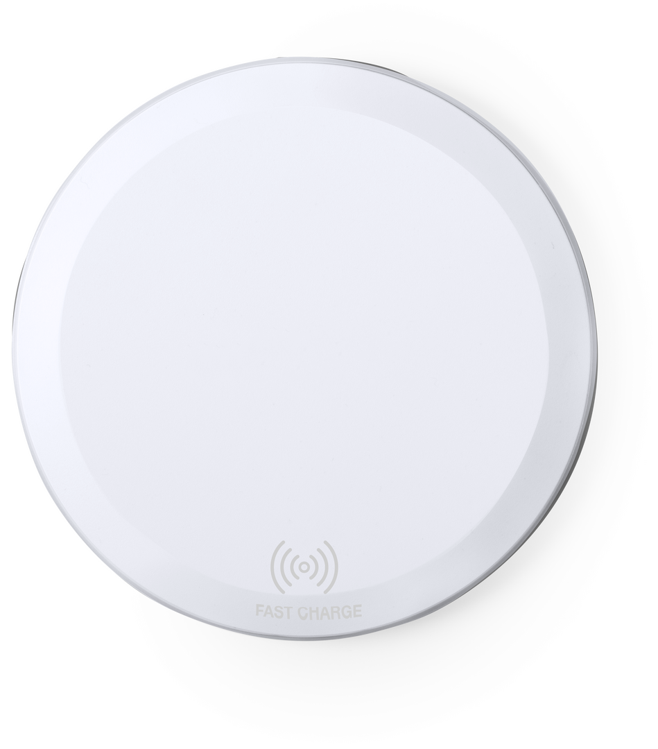 Cargador inalámbrico circular, con función carga rápida de 10W. Base antideslizante e indicador LED de estado de carga. Cable micro USB incluido y compatible con smartphones con tecnología de carga inalámbrica. Presentado en atractiva caja de diseño.