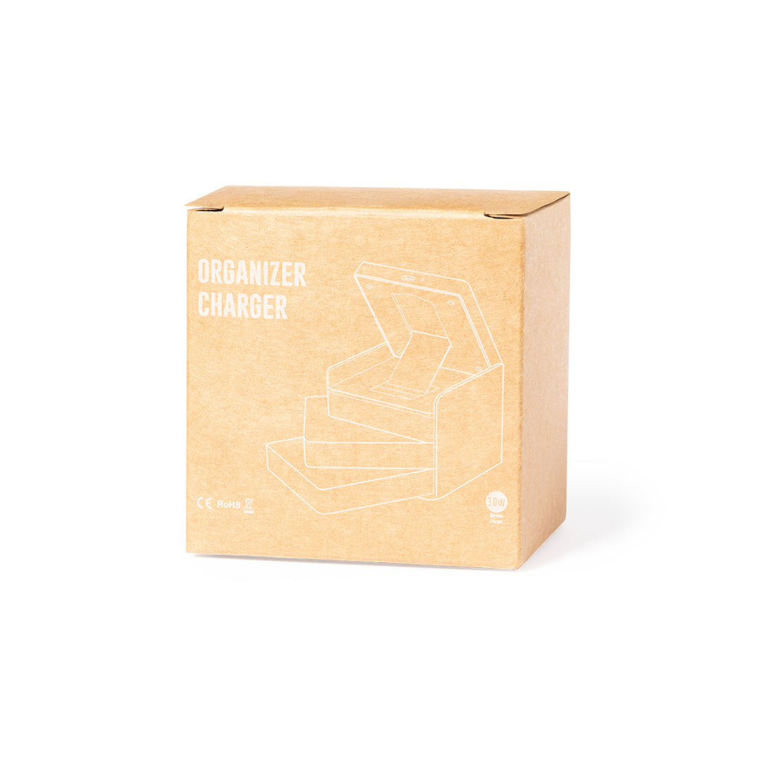 Cargador organizador con soporte para smartphone y cargador inalámbrico 10W integrado, compatible con dispositivos equipados con tecnología de carga inalámbrica Qi. Con 3 compartimentos de almacenaje transparentes y extraíbles. Indicador de estado de carga, con cable de carga Tipo C de 1 m incluido. Base antideslizante y presentado en caja individual de diseño kraft, con manual de instrucciones en español e inglés.Fabricado conforme a los estándares RoHS y en cumplimiento con los siguientes requisitos de seguridad:Sistema de protección contra sobrecalentamiento.Sistema de protección contra sobrecarga.Sistema de bloqueo para evitar cortocircuitos.