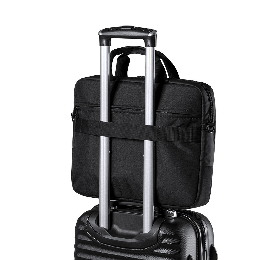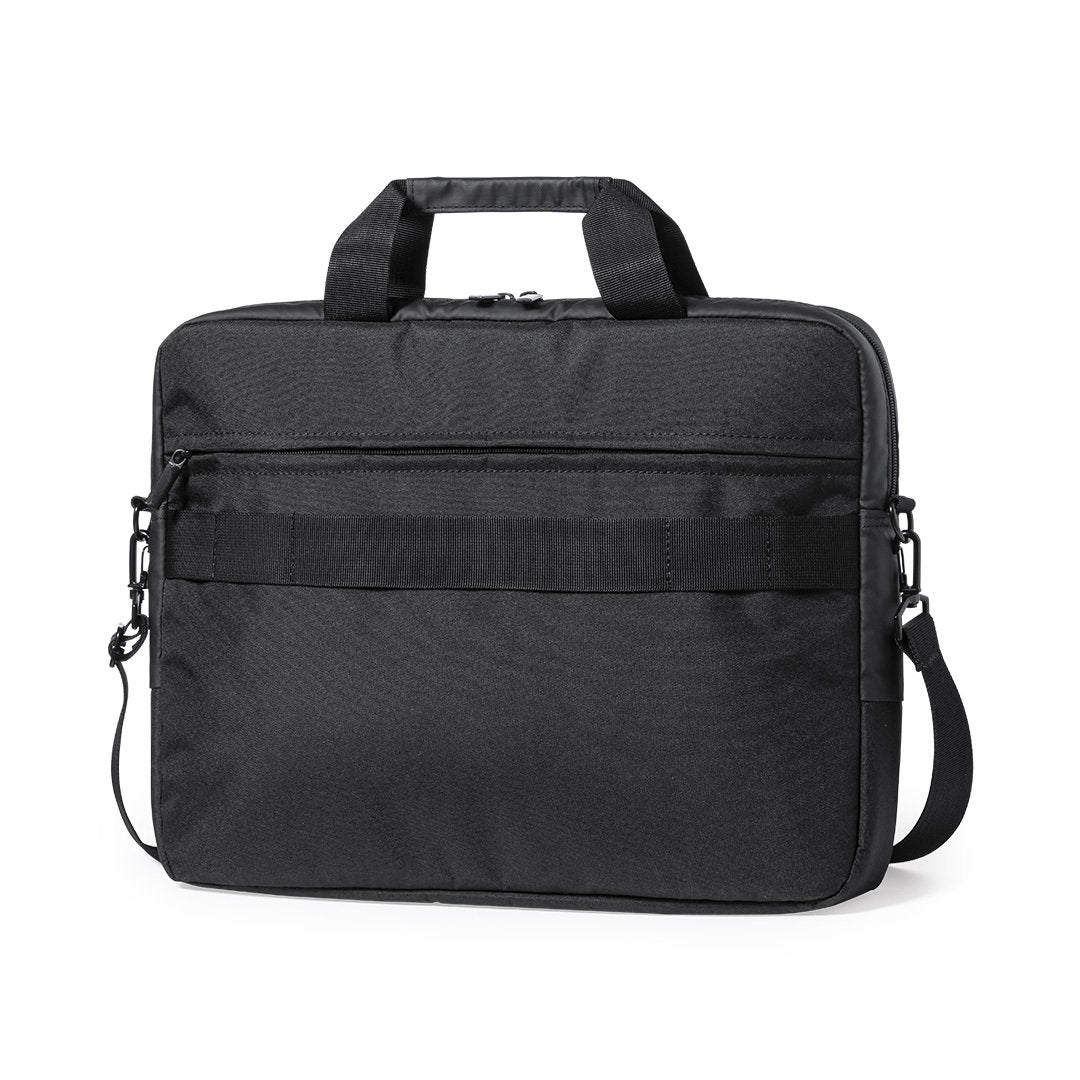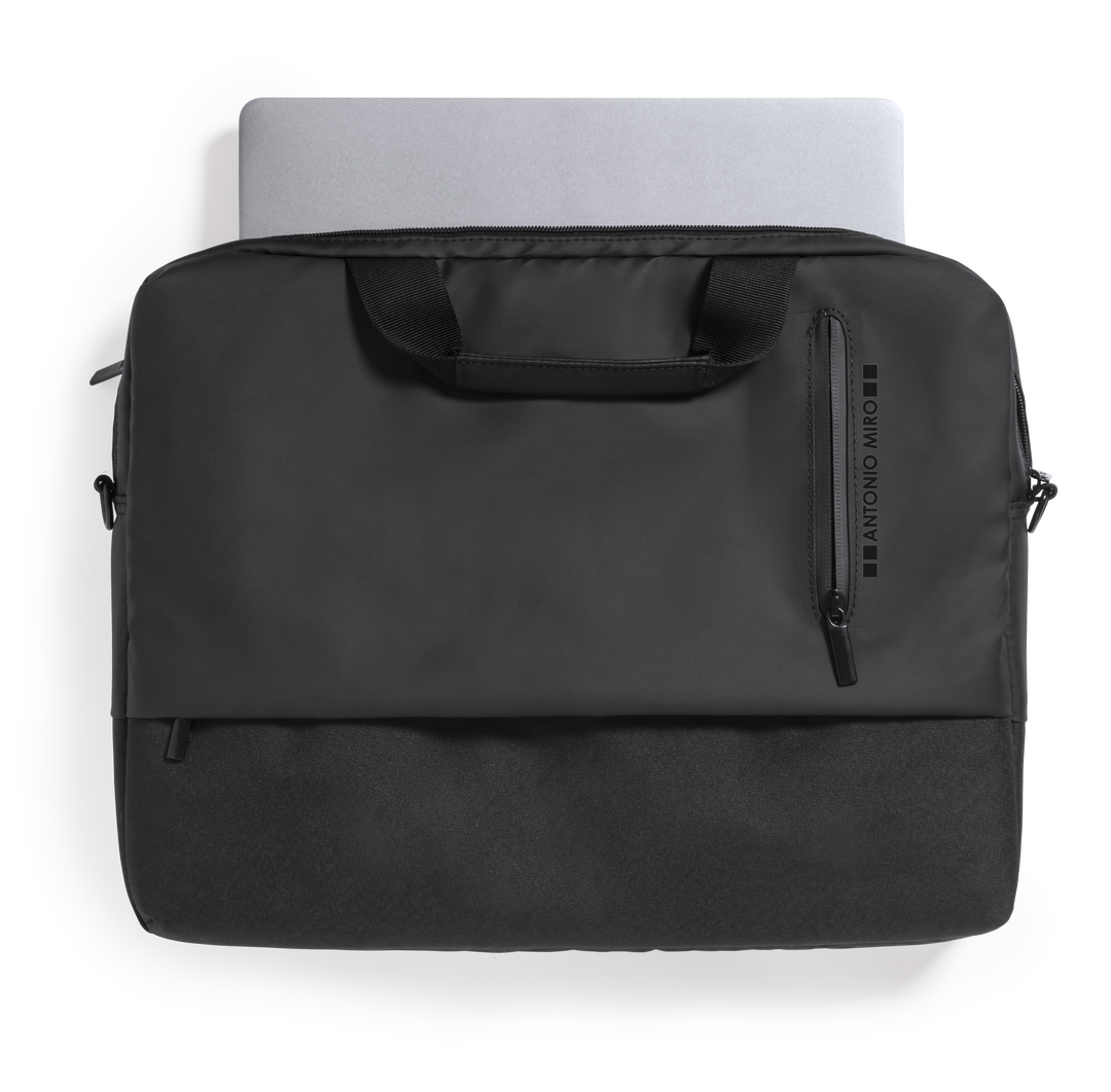 Maletín de Antonio Miró de calidad premium en resistente poliéster 600D. De sobrio diseño y con compartimento acolchado para portátil de hasta 15 pulgadas. Con cómoda asa de transporte reforzada, cierres de cremallera con tiradores metálicos y bolsillo frontal. Logotipo de la marca en frontal.