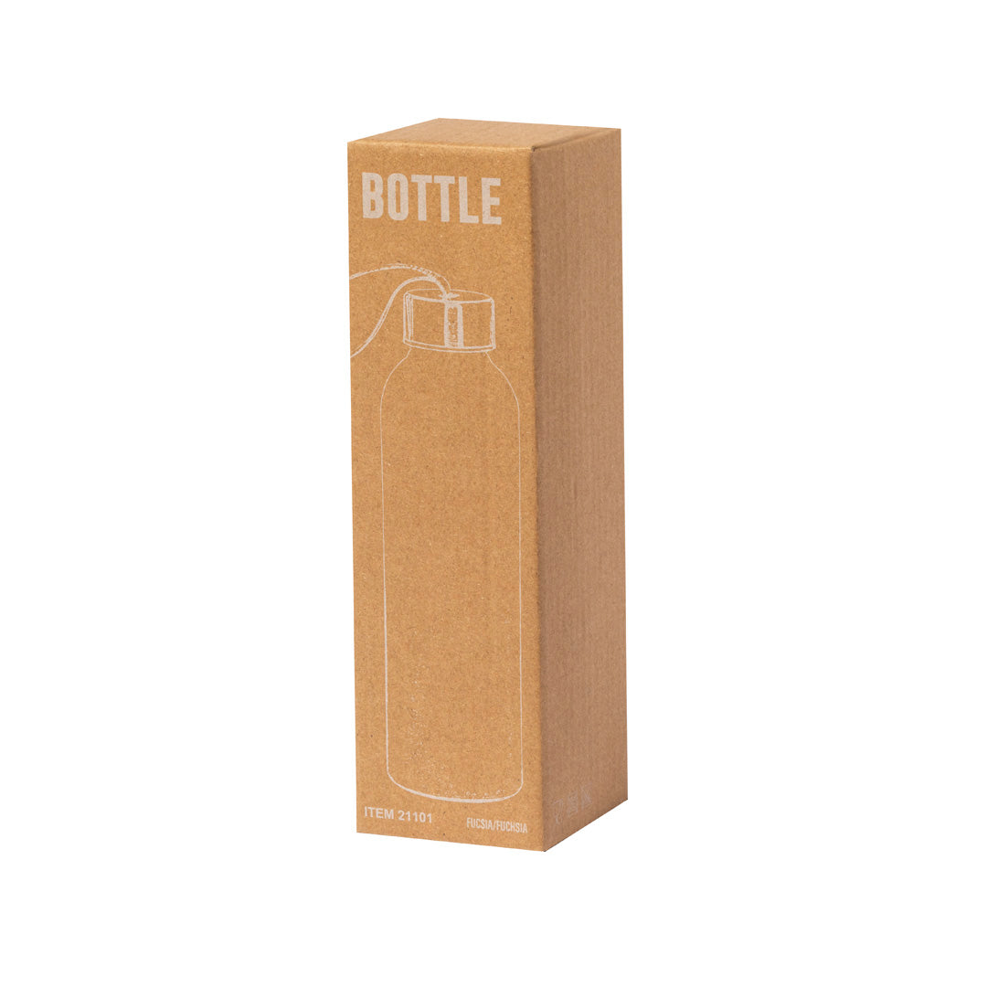 Bidón de cristal y acero inox con 500 ml de capacidad. Original diseño degradado de color blanco translúcido a diversos colores mate. Tapón de rosca con sellado perfecto con correa para su fácil transporte. Presentado individualmente en caja de diseño kraft.