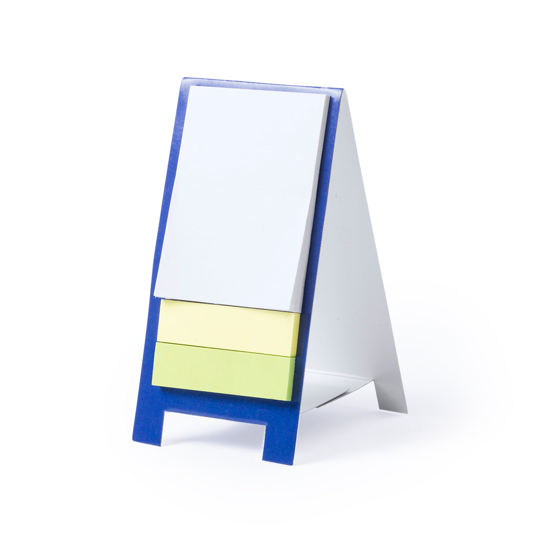 Original portanotas de cartón con diseño stand en variada gama de vivos colores. Incluye 30 notas adhesivas grandes y 50 mininas adhesivas. Presentación desplegado para fácil impresión.