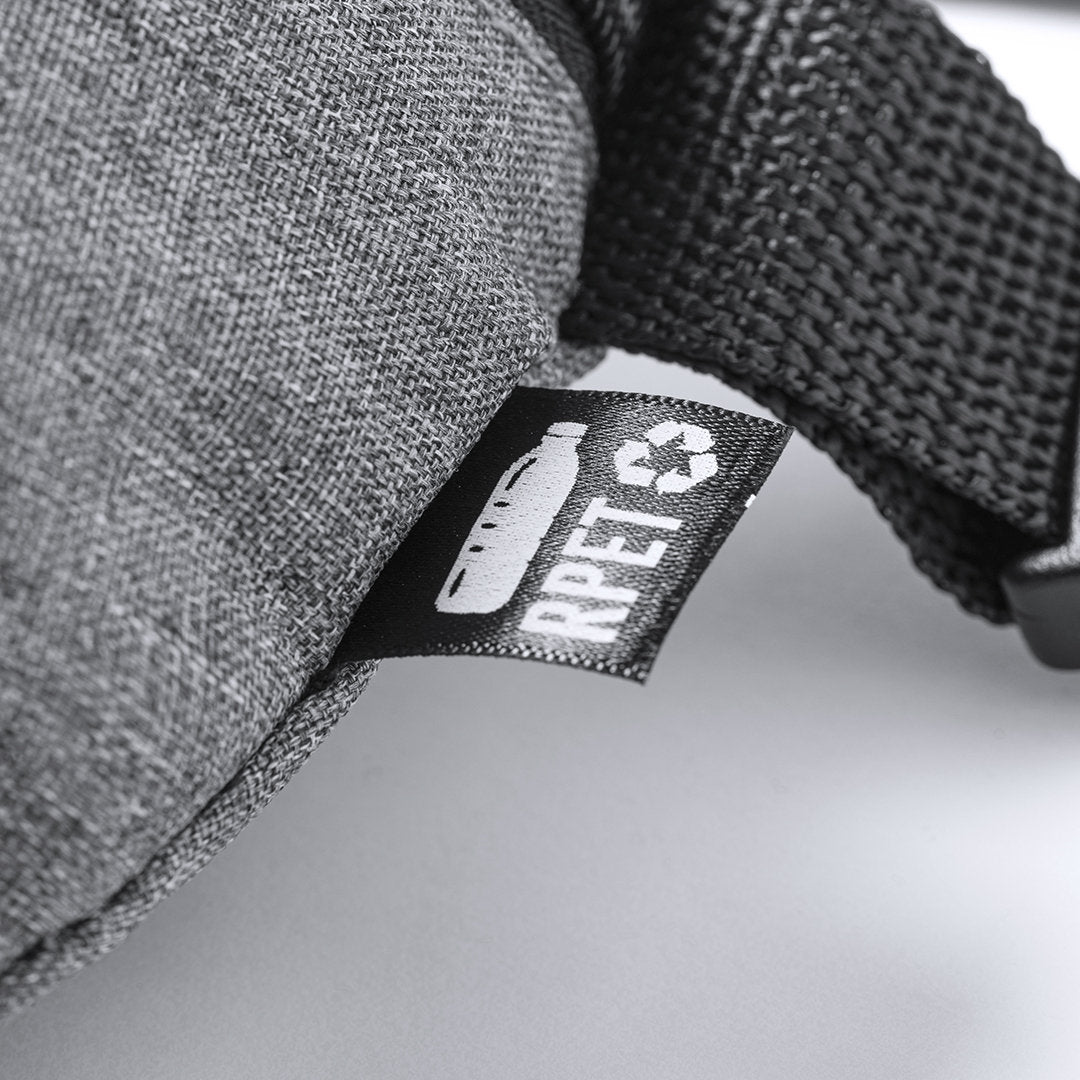 Riñonera de línea nature fabricada en resistente 600D RPET efecto melange. Elaborado a partir de plástico reciclado para así fomentar la reutilización de residuos plásticos y contribuir a la sostenibilidad del planeta. Compartimento principal con cierre de cremallera y cinta ajustable con cierre de hebilla. Diseñada para actividades deportivas y de ocio, con distintivo RPET en etiqueta exterior.