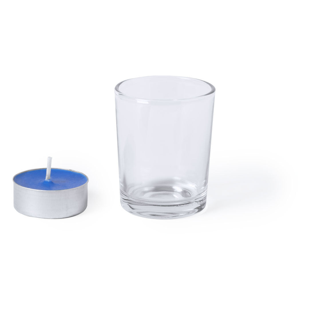 Vela aromática presentada en original tarro de cristal. Disponible en extensa gama de colores y fragancias: blanco en aroma vainilla, rojo en aroma fresa, azul en aroma lavanda, verde en aroma manzana y naranja en aroma naranja. Presentada en caja individual blanca.