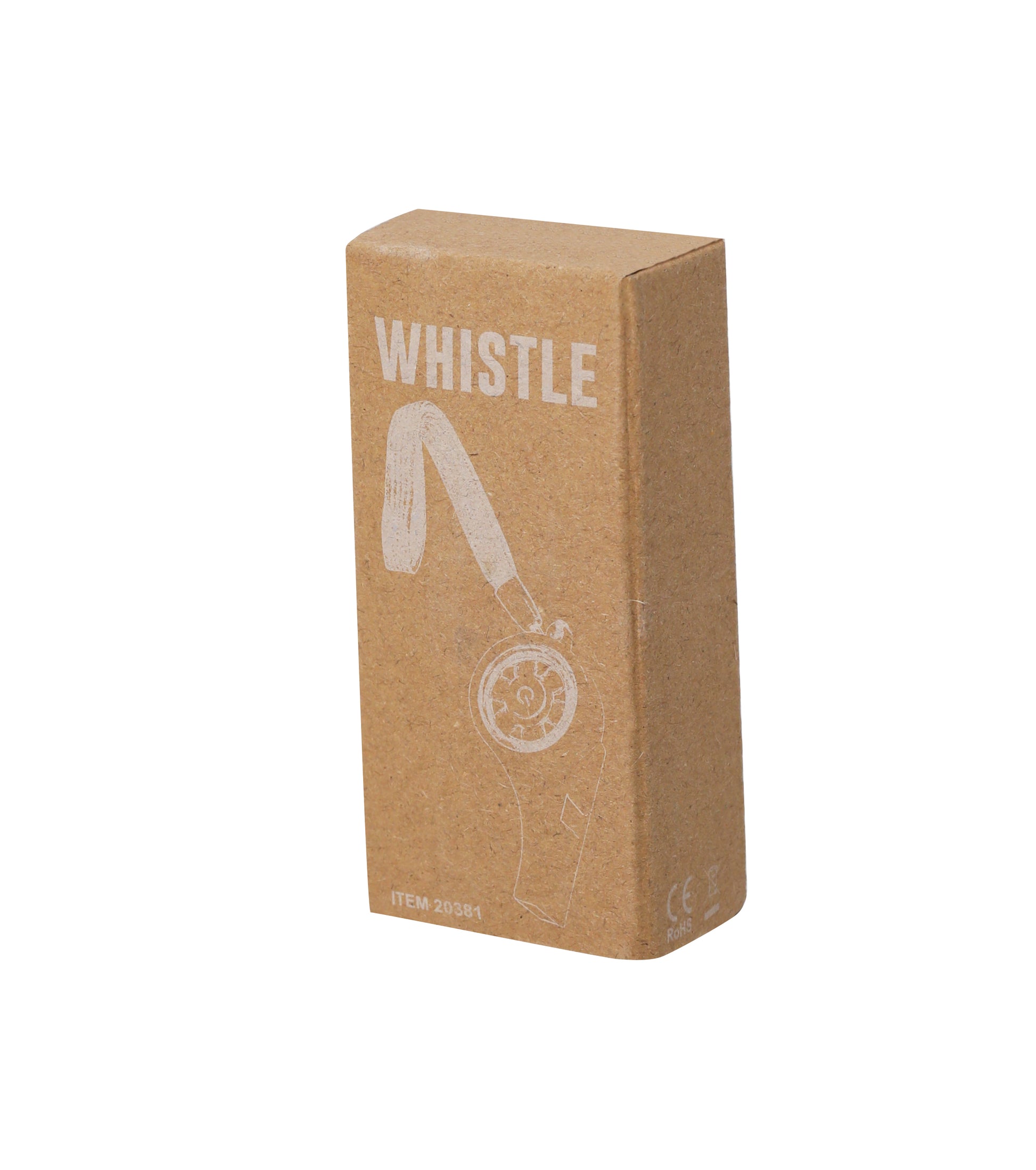 Ingenioso silbato multiusos con luz integrada en el cuerpo. Fabricado en resistente ABS, con 6 luces COB y varias posiciones de iluminación: fija con dos niveles de intensidad e intermitente para una mayor visibilidad. Cordón para un cómodo transporte y está alimentado por una pila de botón (incluida). Presentado en caja de diseño kraft.