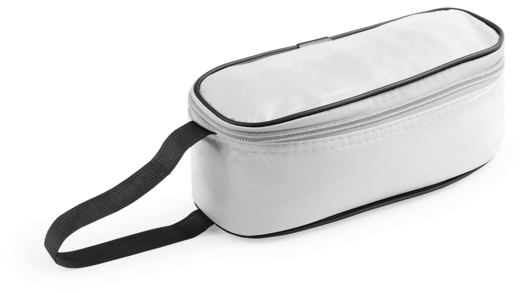 Portabocadillos en resistente PVC de vivos colores y con cierre de cremallera. Con asa en nylon reforzado e interior isotermo en acabado de aluminio.