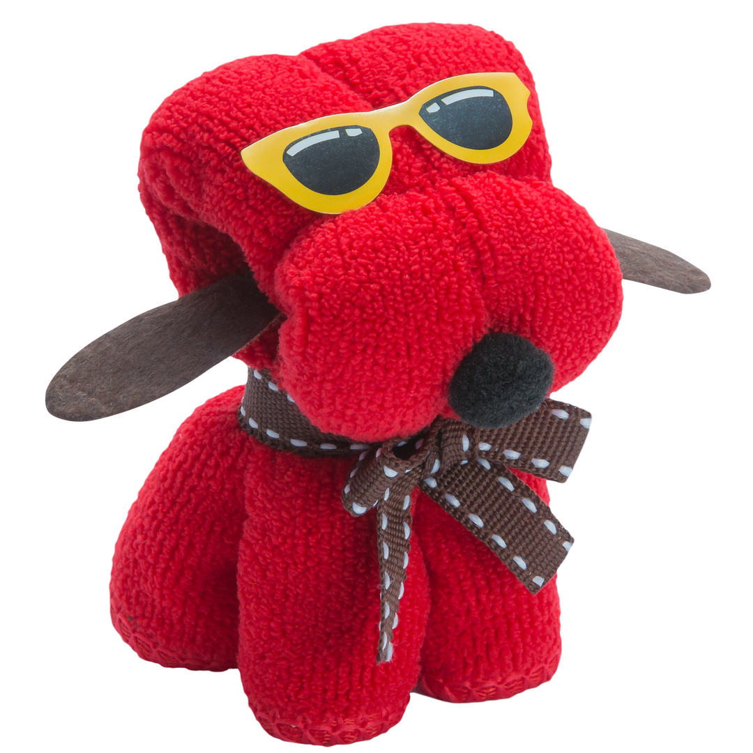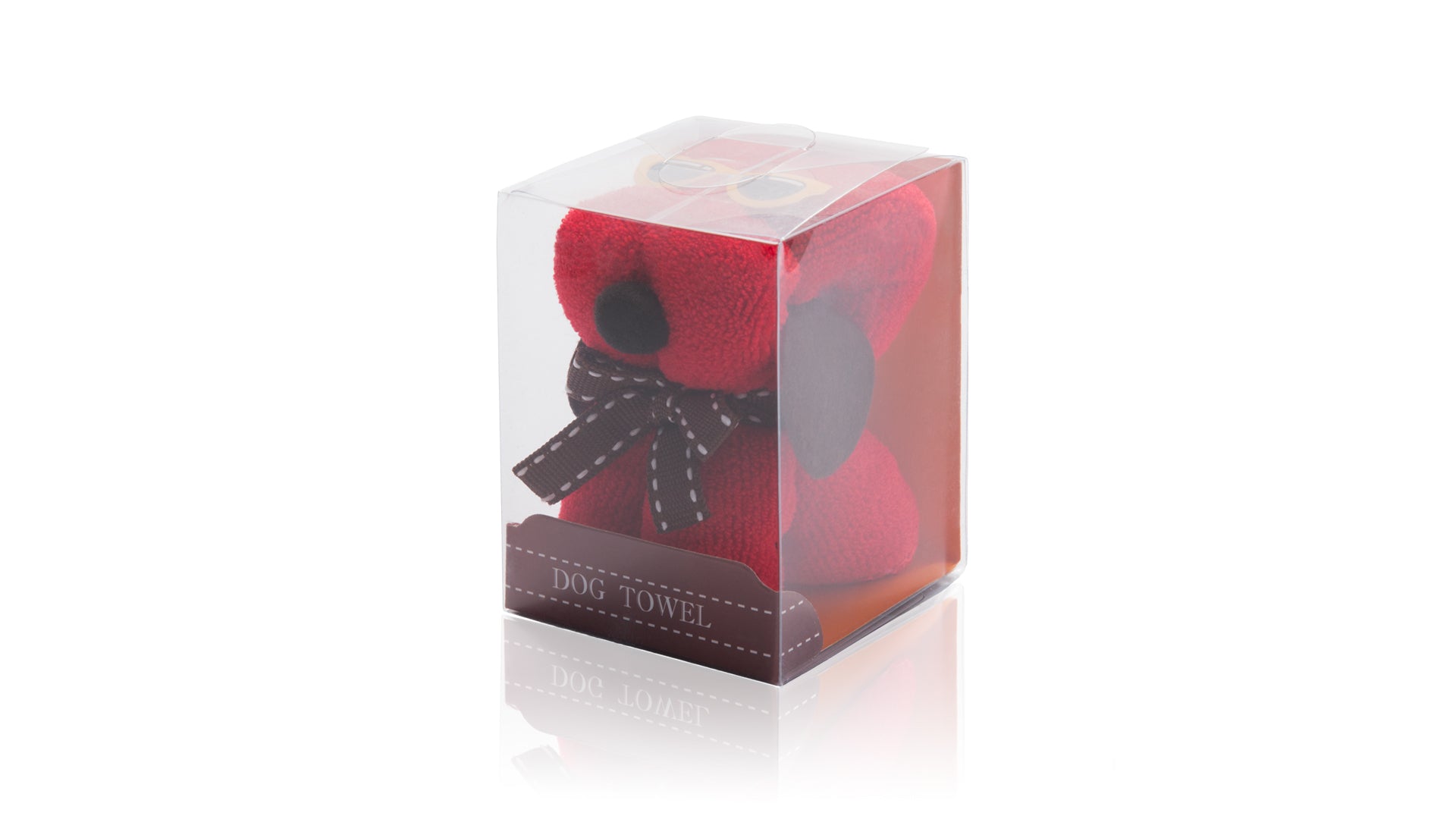 Divertida toalla perro en absorbente y suave microfibra de 310g/m2 en vivos colores. Presentada en estuche de PVC transparente de diseño.