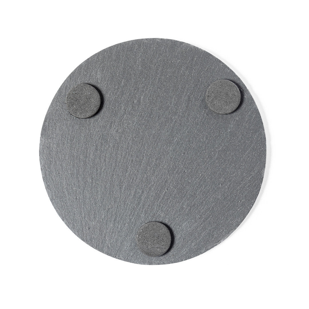 Set de 4posavasos fabricados en pizarra natural, con soporte de bambú. Presentada en atractiva caja individual de diseño acabado kraft.