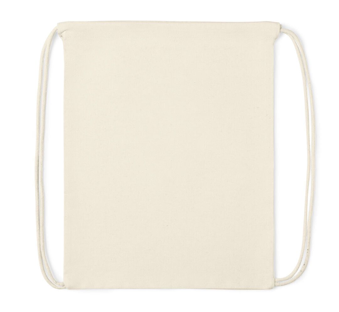 Mochila de cuerdas de línea nature fabricada en 100% algodón de 180g/m2 en acabado natural. Compartimento principal con cordones en algodón.