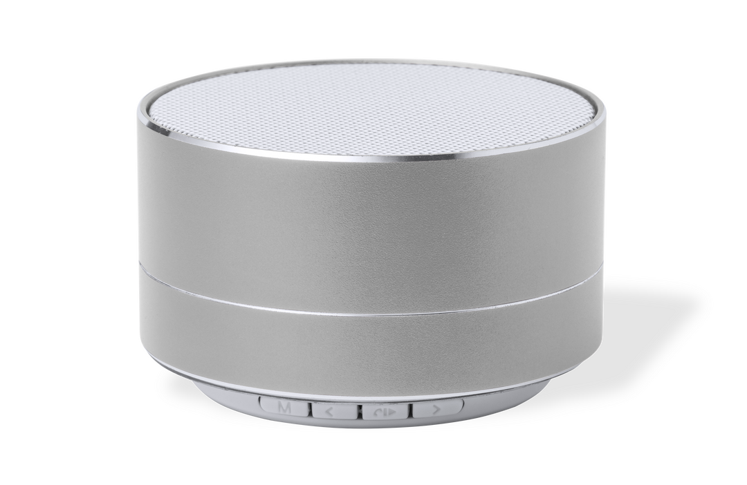 Compacto altavoz con conexión Bluetooth. Fabricado en aluminio reciclado, con posibilidades de reciclaje casi infinitas, sin perder sus propiedades originales y consumiendo menos energía en este proceso. Con 3W de potencia y batería de 450 mAh. Conexión Bluetooth 5.0, con función manos libres y radio FM. Ranura para tarjetas micro SD, con luz ambiente en la parte inferior. Disponible en variada gama de colores y presentado en caja individual de diseño kraft, con manual de instrucciones en español e inglés.