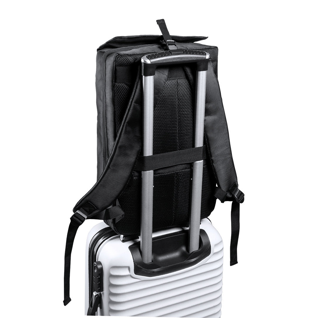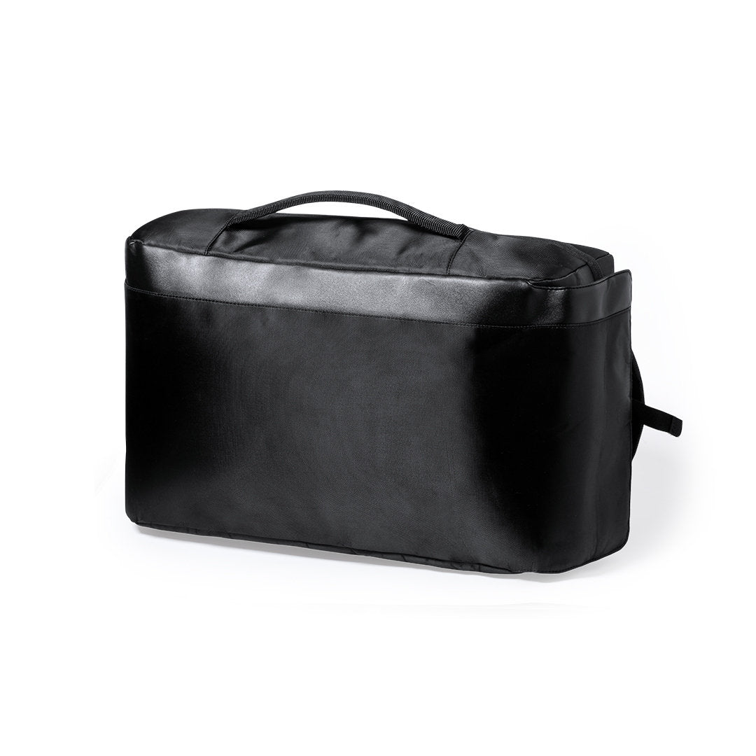 Elegante mochila fabricada en resistente poliéster con detalles en polipiel. Con gran solapa frontal y compartimento principal con cierre de cremallera de doble tirador. Interior con bolsillos acolchados para tablet de hasta 12 pulgadas y ordenador portátil de hasta 17 pulgadas. Asa de transporte lateral acolchada y accesorio de ajuste en trolley, con bolsillo antirrobo en parte trasera. Espalda y cintas de hombros acolchadas y ajustables.