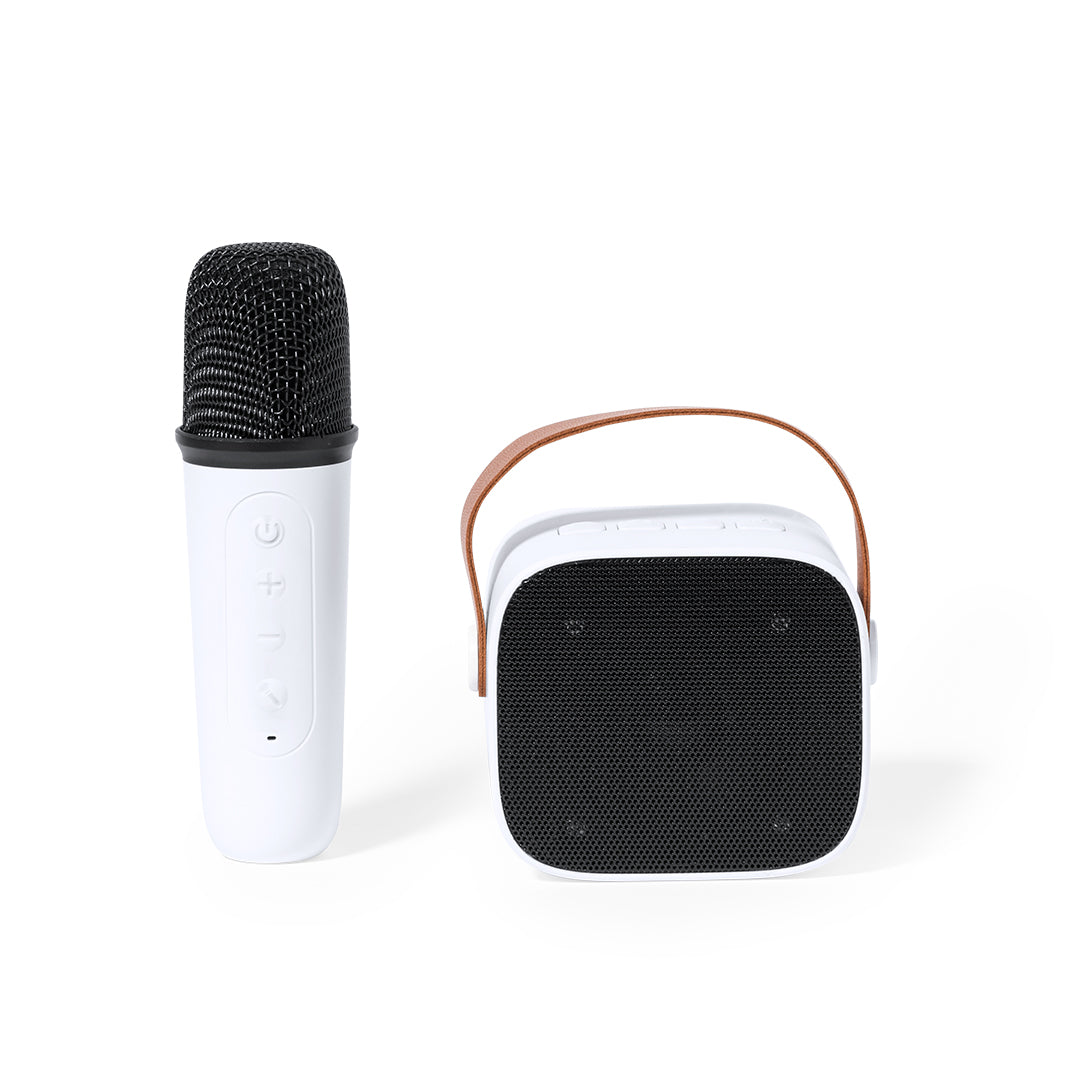 Original pack de karaoke con altavoz y micrófono. Su compacto tamaño y la facilidad de la conexión Bluetooth lo convierte en un ideal accesorio para para disfrutar en cualquier lugar y momento. Incluye:Altavoz con práctica asa de transporte en PU. 5W de potencia y batería de 1200 mAh de larga duración.Micrófono con diseño ergonómico a juego para disfrutar de las mejores canciones.Presentado en caja de diseño Kraft. Disponible manual de instrucciones en español e inglés.