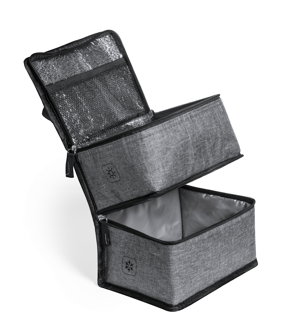 Práctica nevera de línea nature y doble compartimento fabricada en poliéster 600D RPET de alta calidad, elaborado a partir de plástico reciclado para así fomentar la reutilización de residuos plásticos y contribuir a la sostenibilidad del planeta. Asa de transporte reforzada, incluye 2 compartimentos con cierre de cremallera y doble tirador de tela, con distintivo RPET en etiqueta exterior: Compartimento superior diseñado para conservar el calor, con interior isotermo en aluminio. Compartimento inferior diseñado para conservar el frío, con interior isotermo en PEVA.