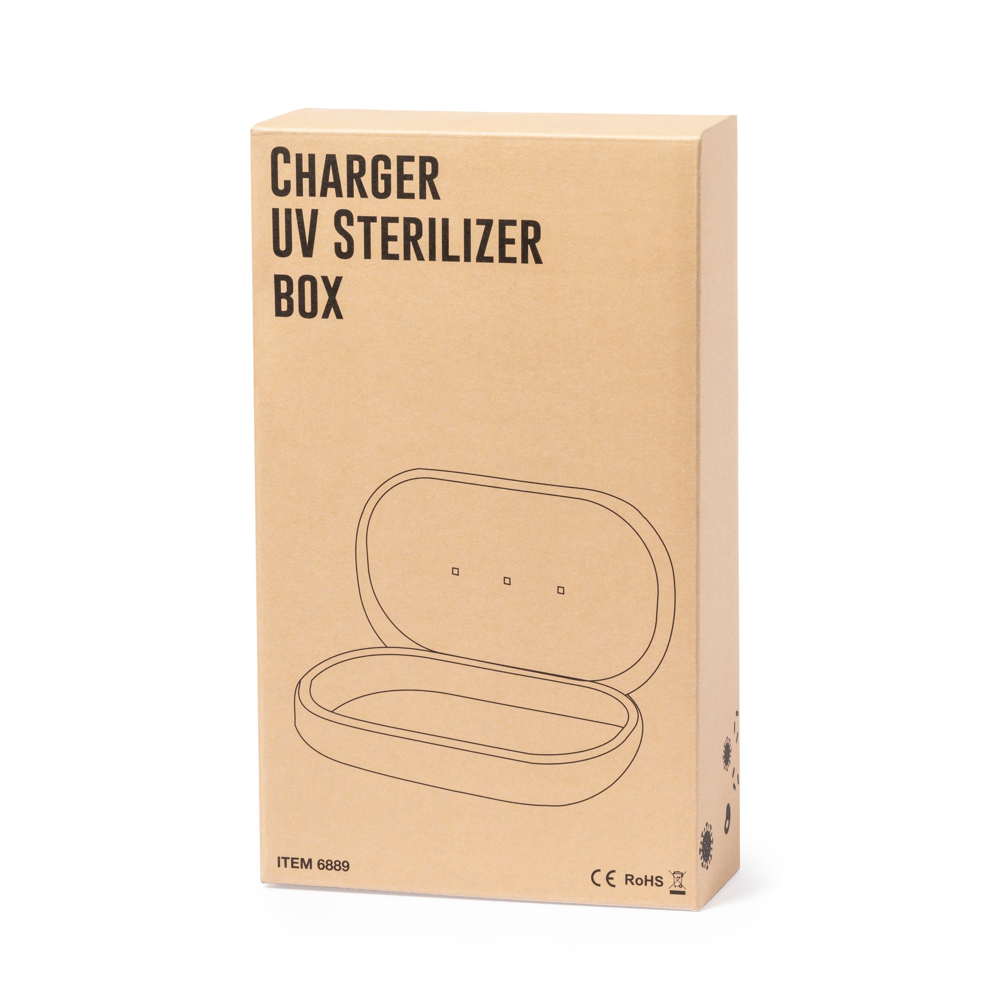 Caja esterilizadora de línea nature, con base de carga en bambú. Luz ultravioleta tipo C, con cargador inalámbrico 5W para smartphone integrado en tapa. Especialmente diseñada para la eliminación de microorganismos y bacterias en objetos de uso cotidiano como el smartphone, llaves, gafas, mascarilla, auriculares, smartwatch... Fabricada en resistente material ABS de acabado mate y presentada en atractiva caja individual de diseño. Fácil de usar, basta con introducir el objeto dentro de la caja. Potencia de bombilla 1W longitud de onda de 270-280 nm, con alimentación mediante cable USB Tipo C de 1m de largo con color a juego. Tiempo de esterilización de 5 y 10 minutos con función auto-apagado. Disponible manual de usuario en español e inglés. Disponible certificación CE, RoHS y de efectividad germicida.