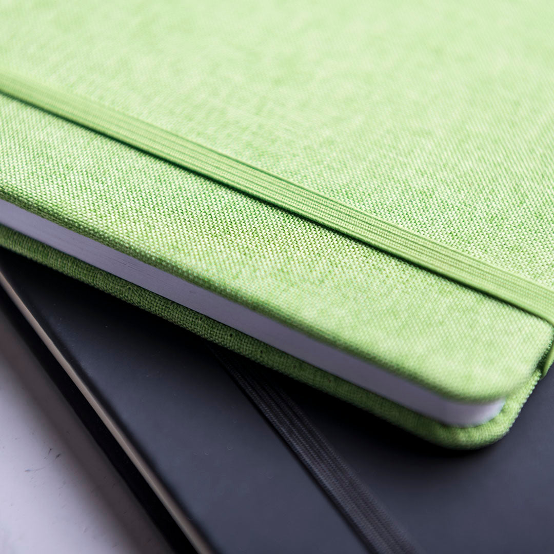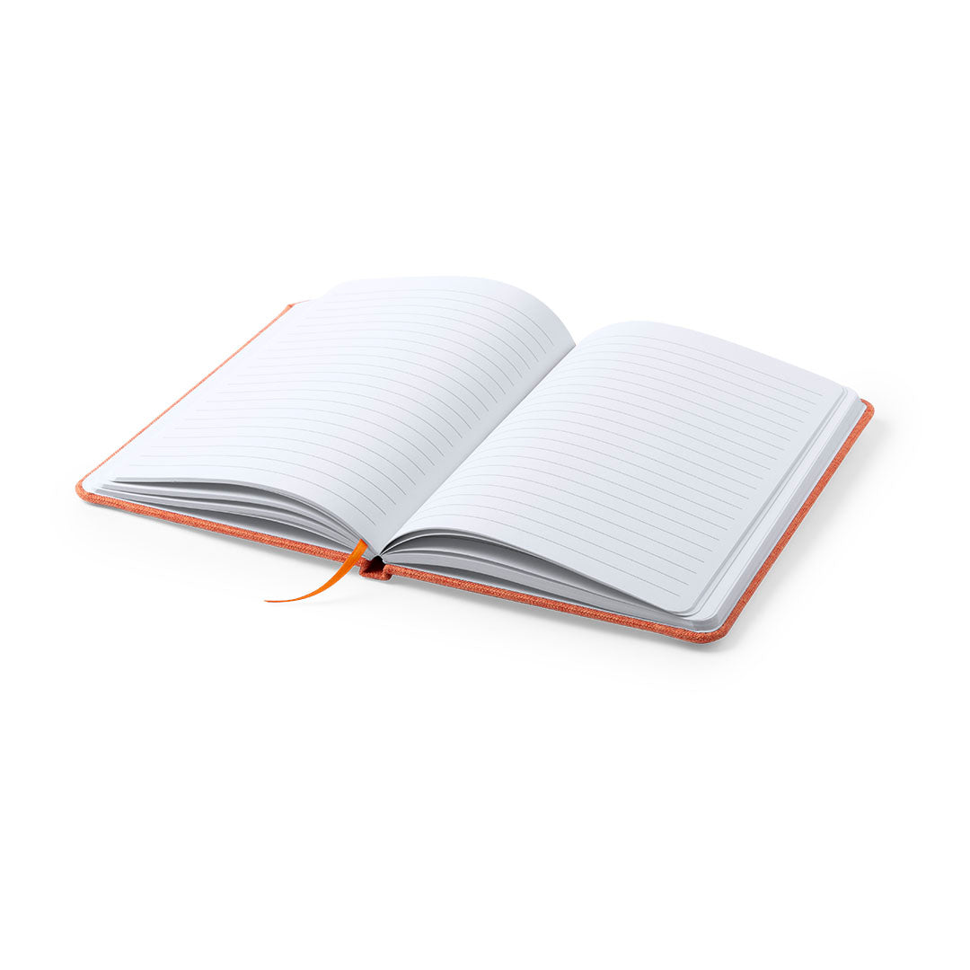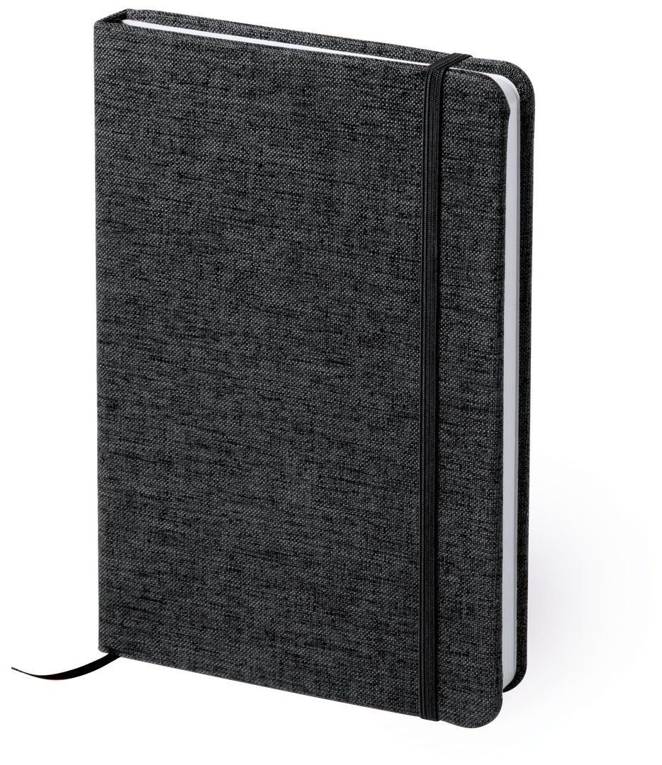 Bloc de notas con tapas de suave poliéster. En variada gama de colores, con elástico de cierre y marcapáginas y a juego. Incluye 80 hojas con disposición a una raya.