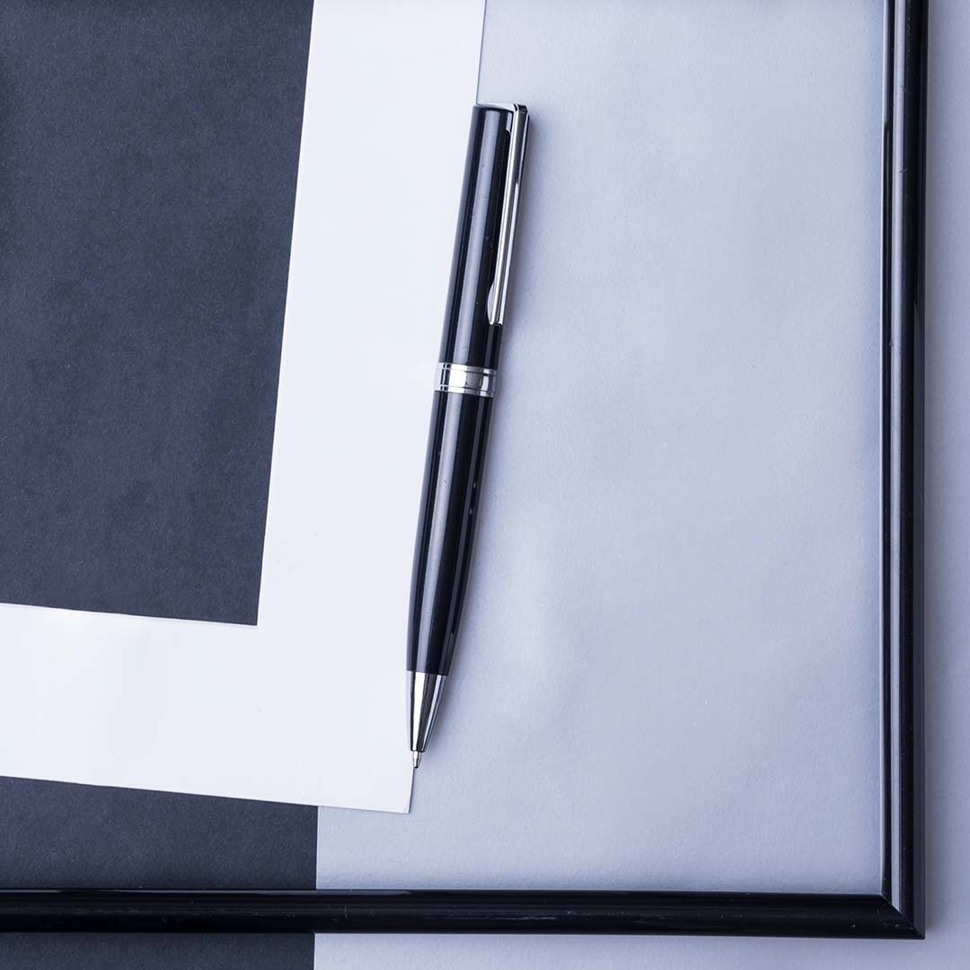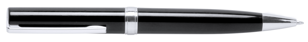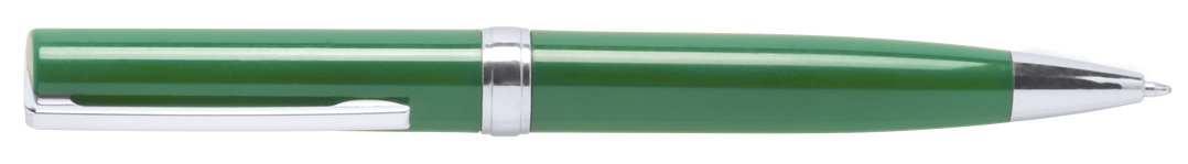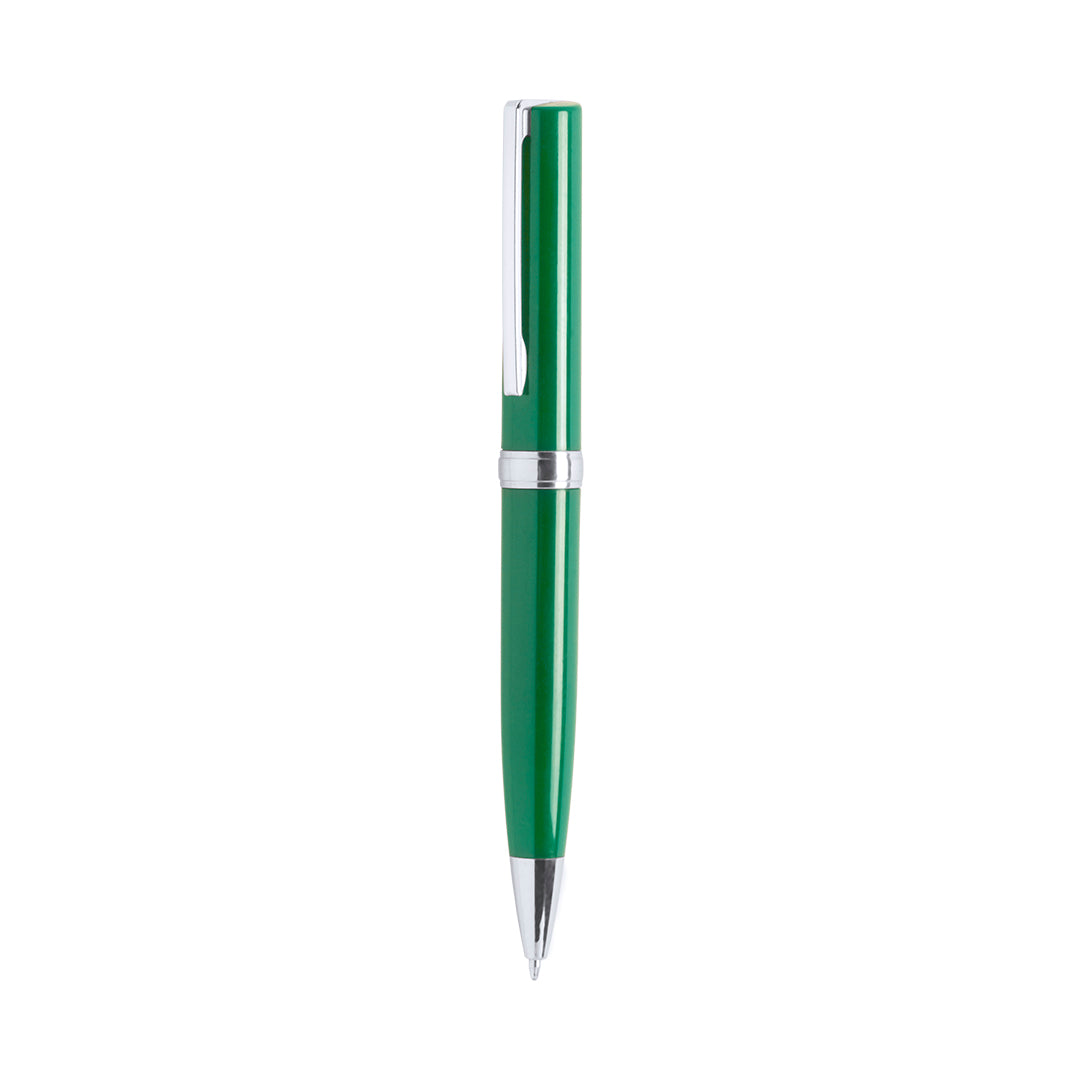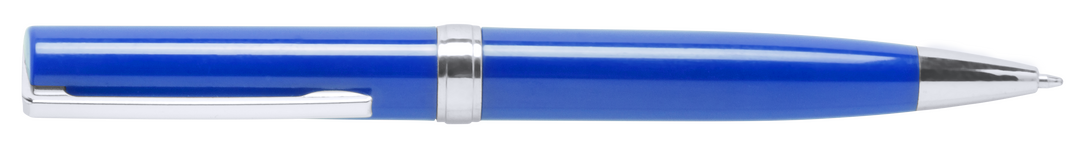 Bolígrafo de mecanismo giratorio en variada de vivos colores brillantes con accesorios en colore plateado. Tinta azul.