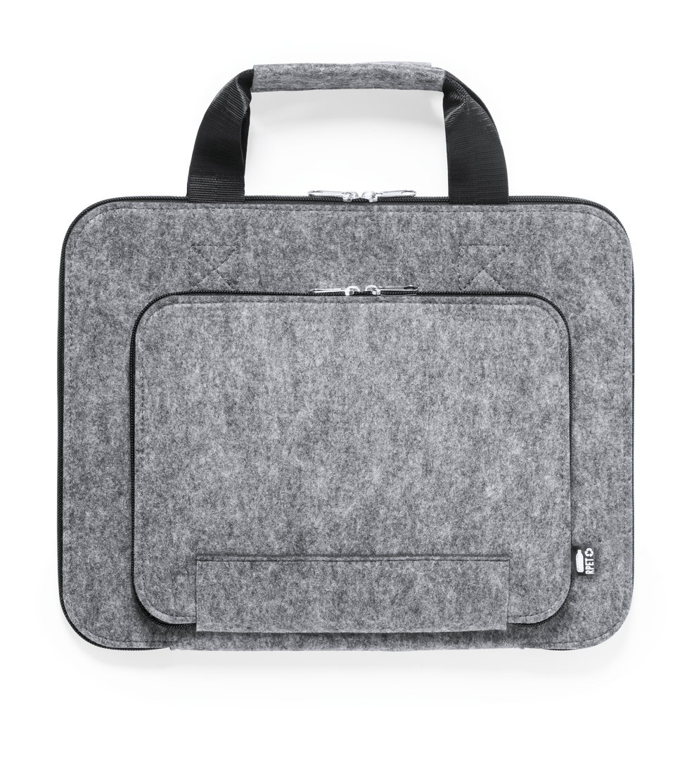 Portadocumentos de línea nature y en resistente fieltro RPET reciclado, fruto de la combinación del proceso de reciclaje de materiales plásticos junto con la técnica milenaria de fabricación del fieltro, dando como resultado un material de eco-tendencia que, además de ser de origen reciclado, también se convierte en reciclable. Bolsillos principal y frontal con cierres de cremallera y tiradores metálicos, con asas reforzadas a juego y distintivo RPET en etiqueta exterior.