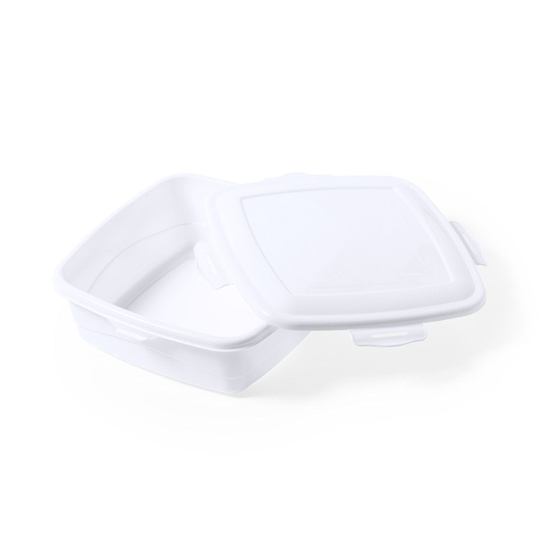 Fiambrera de 1L de capacidad, hecha en PP de color blanco. De fabricación europea y con certificación Food Grade, garantizando la seguridad cuando los alimentos entran en contacto con el material usado para fabricar el producto. Formato cuadrado, con cierre de seguridad en todos sus lados.
