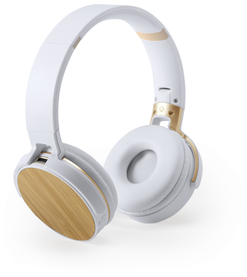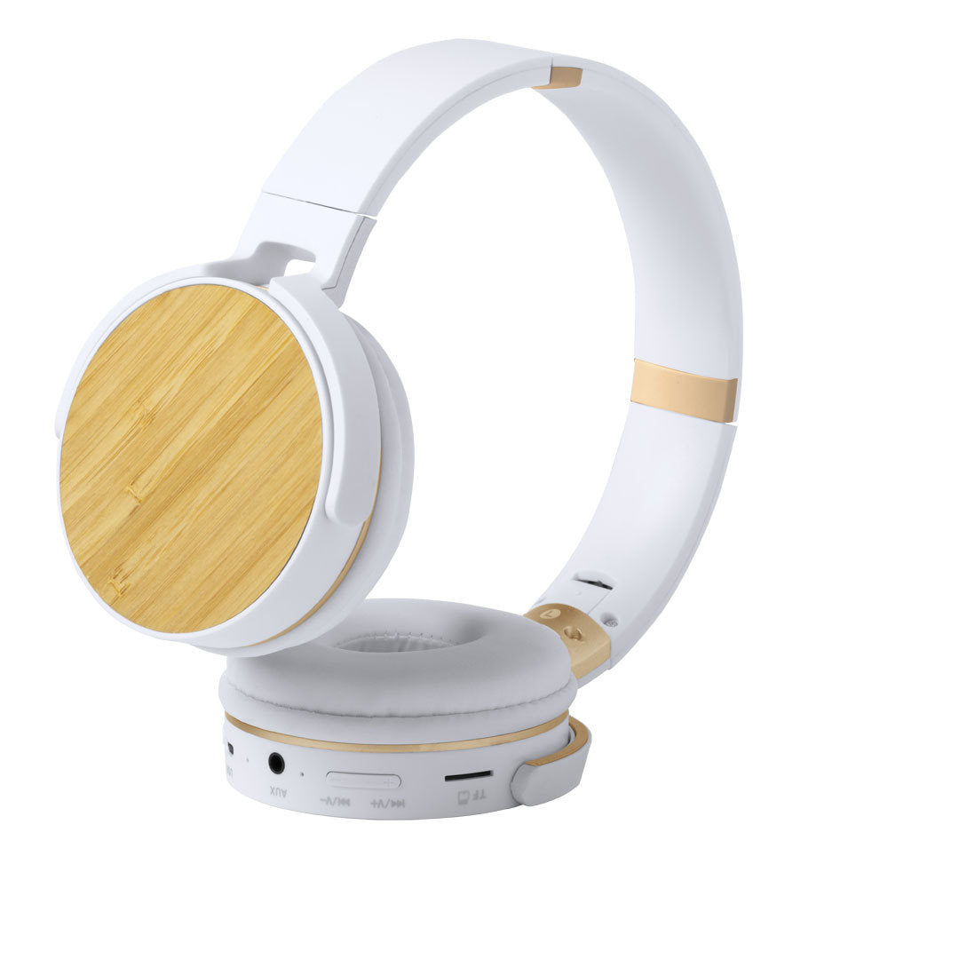 Auriculares de línea nature. Diseño plegable de diadema, con conexión Bluetooth 5.0 y detalles en bambú procedente de cortes naturales. Con ranura para tarjeta micro SD -tarjeta no incluida-, función manos libres, radio FM, entrada de línea -cable mini jack de 3,5mm incluido- y recargables mediante cable micro USB -incluido-. Con cómodas almohadillas en polipiel de color blanco y presentados en atractiva caja de diseño eco.