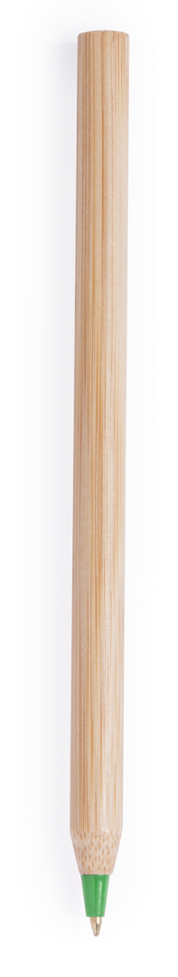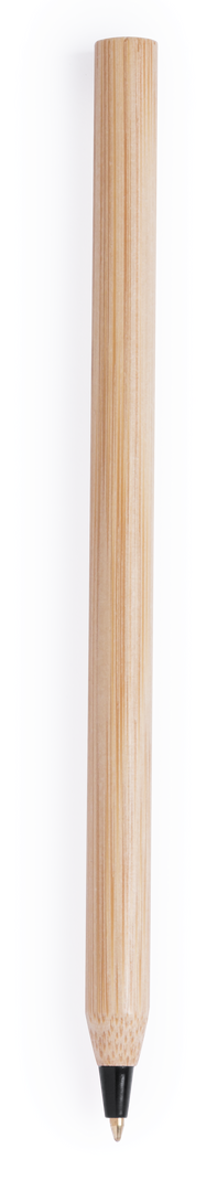 Bolígrafo de línea nature con cuerpo en madera de bambú. Diseño minimalista, con punta en variada gama de colores. Capucha transparente y tinta azul.