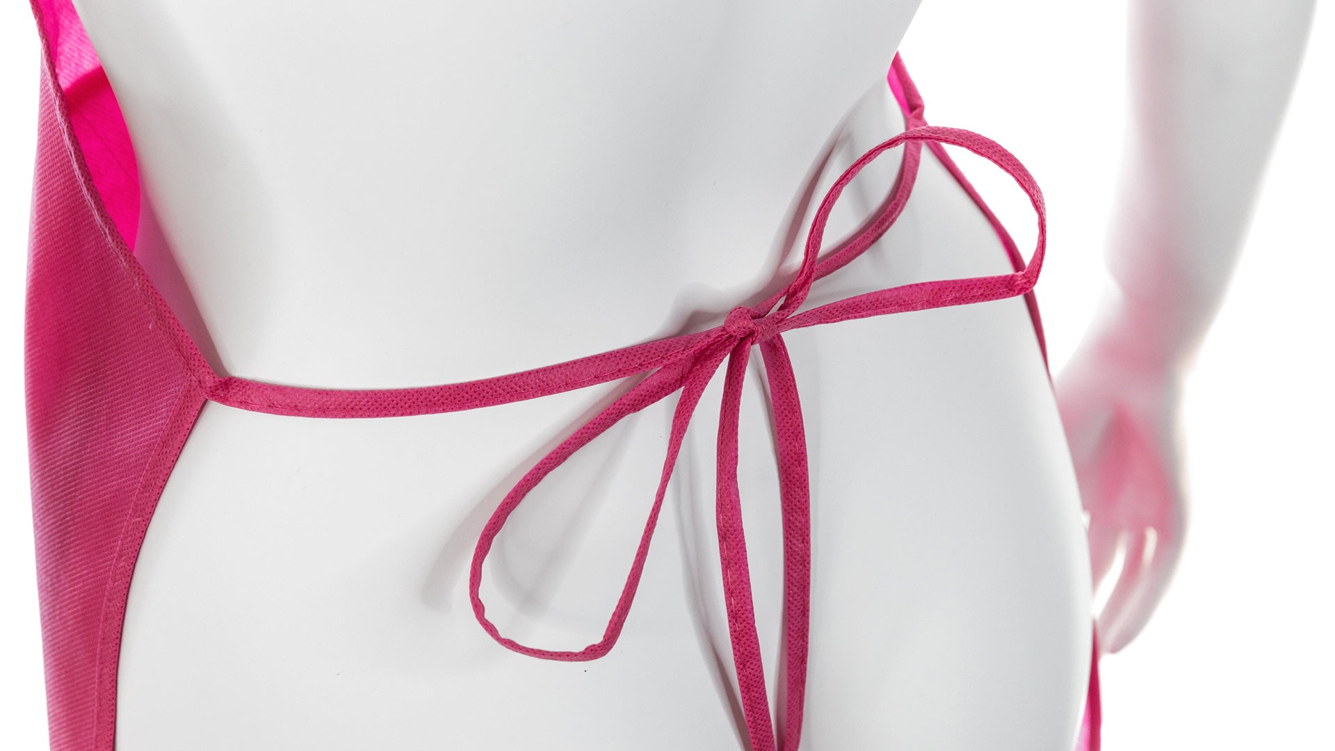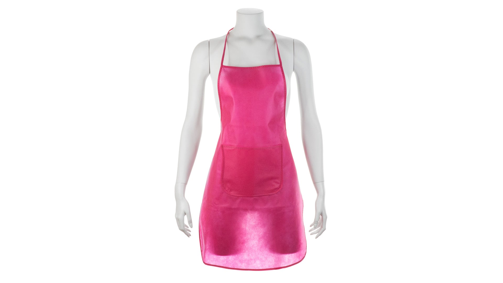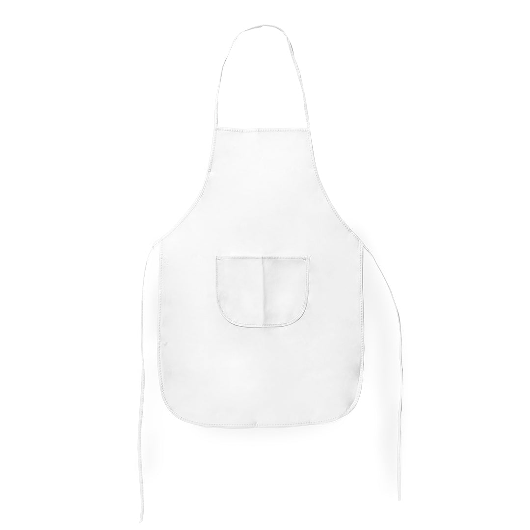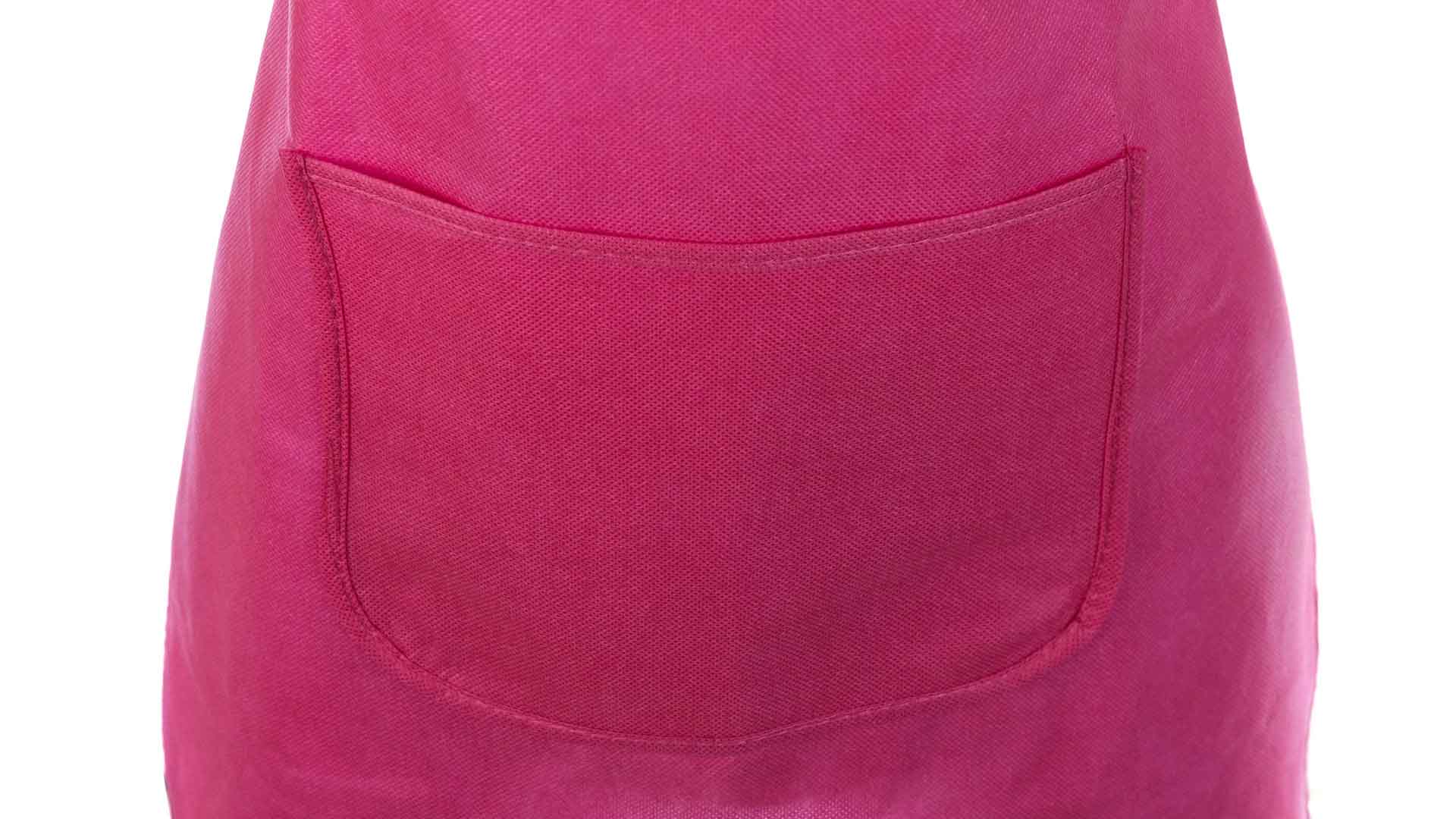 Delantal de non-woven en variada gama de vivos colores. Con bolsillo frontal y cintas de ajuste. De corte por encima de la rodilla.