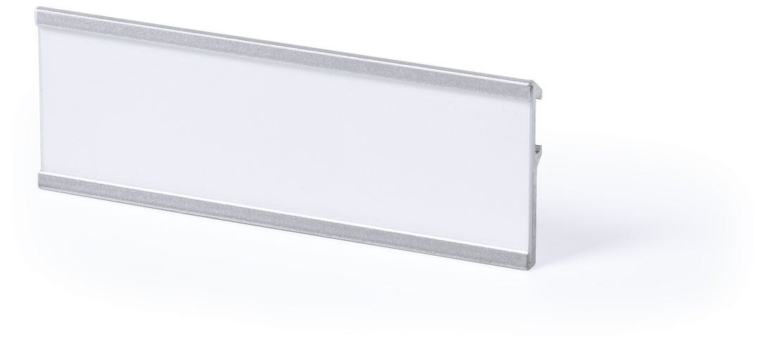 Identificador con marcos de aluminio en acabado anodizado. Parte trasera con pinza de enganche para una fijación segura.