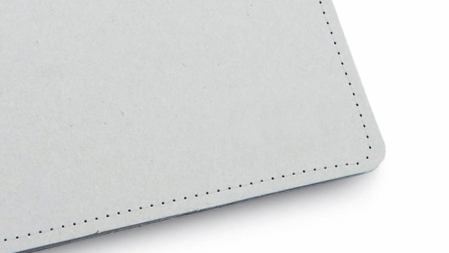 Carpeta con original cierre elástico en resistente cartón reciclado de acabado rígido con costuras de refuerzo. Interior con bloc extraíble de 20 hojas con distribución a una raya, bolsillo triangular de solapa y soporte para bolígrafo.