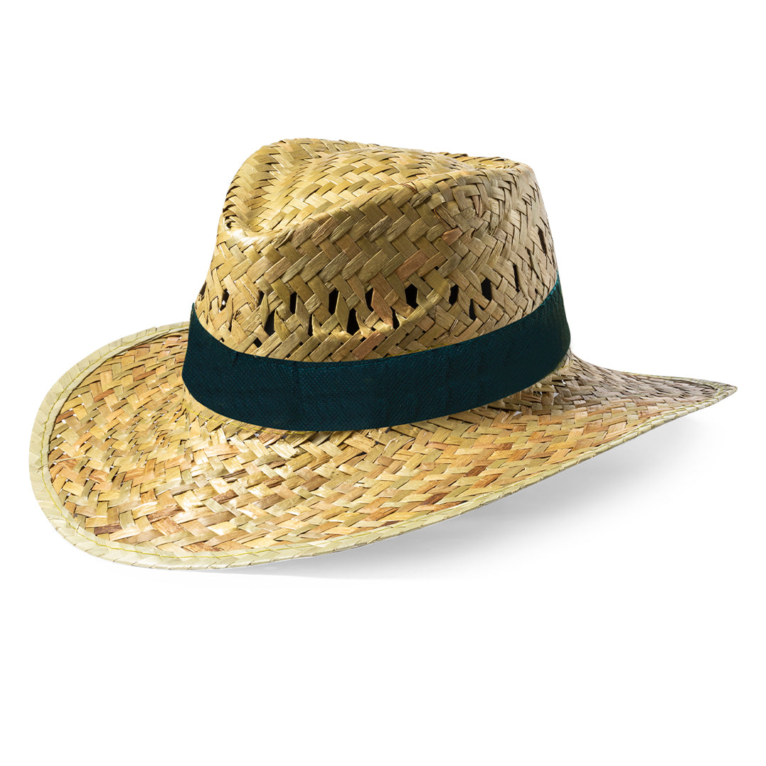 Sombrero de paja. Fabricado con paja trenzada en color verde natural, su forma de confeccionarlo hace que sea transpirable. Cuenta con una cinta interior para que sea más confortable.