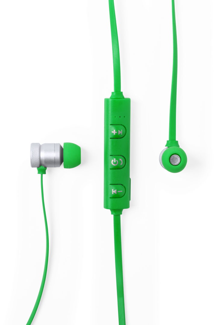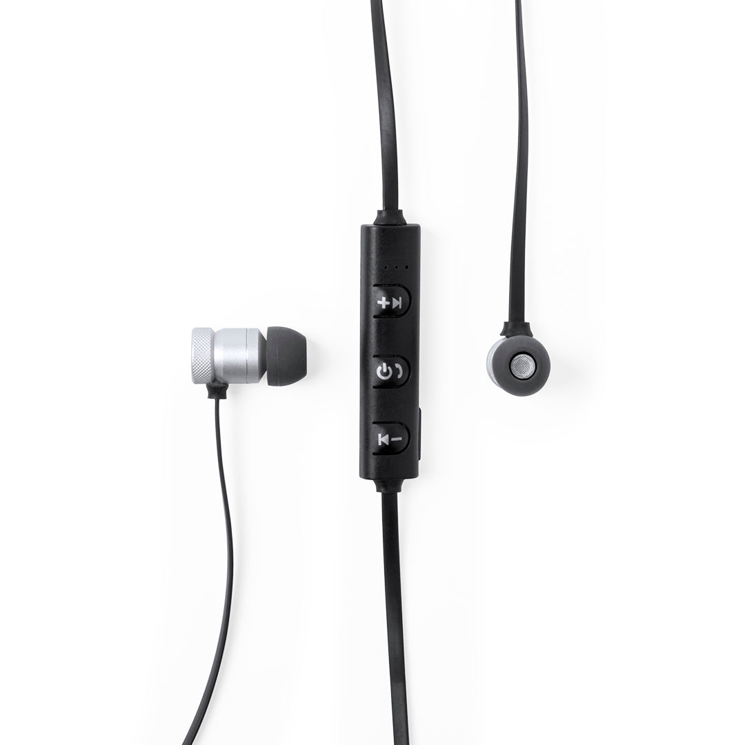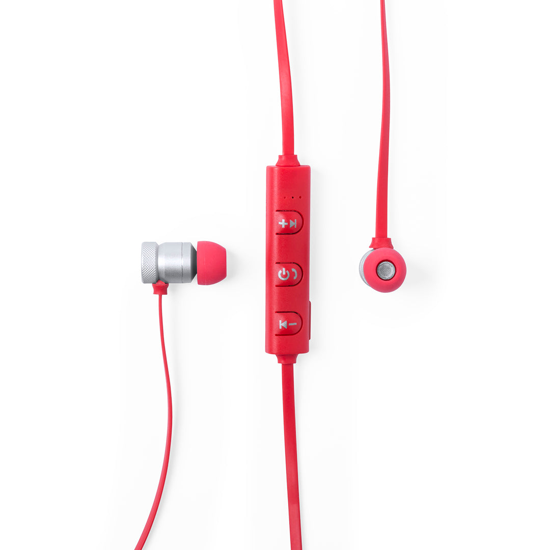 Auriculares intraurales con conexión Bluetooth, suave cuerpo de aluminio e imanes de sujeción. Disponibles en variada gama de vivos colores, con panel de control a juego integrado en cable, cable de recarga incluido y presentados en atractiva caja de diseño.