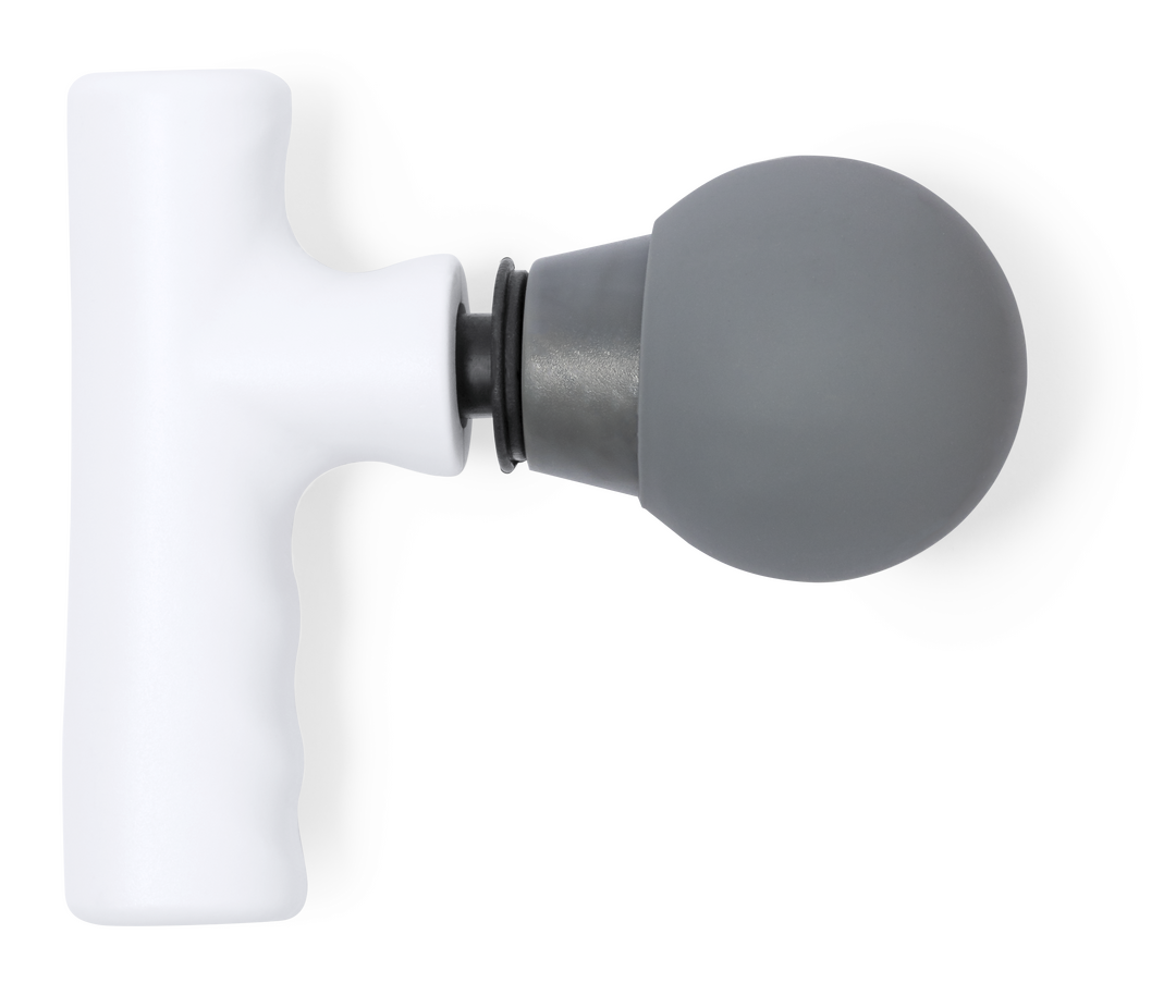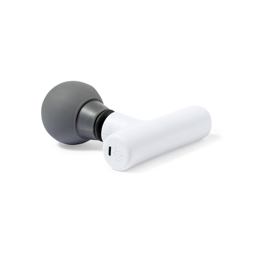 Masajeador eléctrico. Ayuda a relajar los músculos, aliviar los efectos del entrenamiento, liberar tensión y revitalizar el cuerpo. Con dos posiciones de intensidad. Batería recargable de larga duración de 800 mAh - cable USB incluido-. Con manual de uso en español e inglés. Presentado en funda de poliéster RPET con cierre de cordón, elaborada a partir de plástico reciclado para así fomentar la reutilización de residuos plásticos y contribuir a la sostenibilidad del planeta. Etiqueta distintiva RPET en la funda.