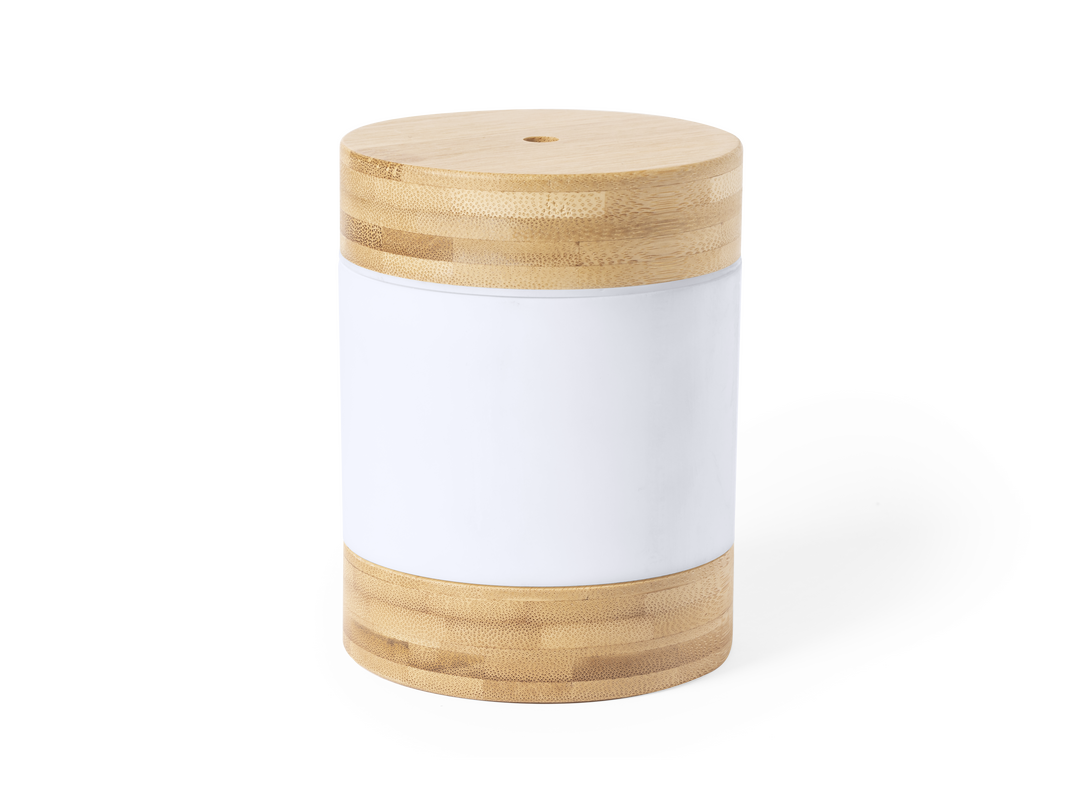 Elegante y decorativo humidificador de línea nature, fabricado en combinación de bambú con resistente PC. Con luz led de 2 posiciones y vaporización continua. Depósito de 250 ml, indicado para uso en estancias de hasta 25m2. Conexión USB y cable Micro USB incluido de 100 cm. Presentado en atractiva caja de diseño eco.