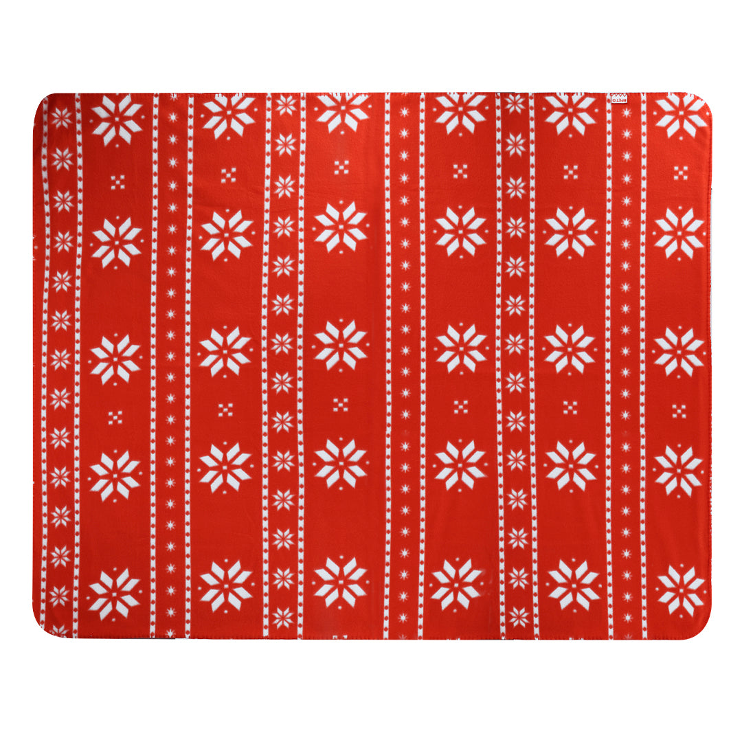 Manta de 130x160 cm fabricada en suave poliéster RPET. Original diseño de navidad de color rojo con motivos navideños en blanco. En suave y cálido material polar fleece de 200g/m2 con tratamiento anti-pilling. Distintivo RPET en etiqueta. Presentada en cartón de color blanco, con lazo a juego. El material RPET se elabora a partir de plástico reciclado, para así fomentar la reutilización de residuos plásticos y ayudar a la sostenibilidad del planeta.
