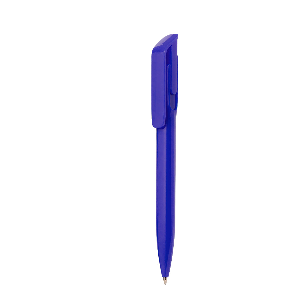 Bolígrafo de mecanismo pulsador. Fabricado en variada gama de colores con clip plano para impresión, de tinta azul.