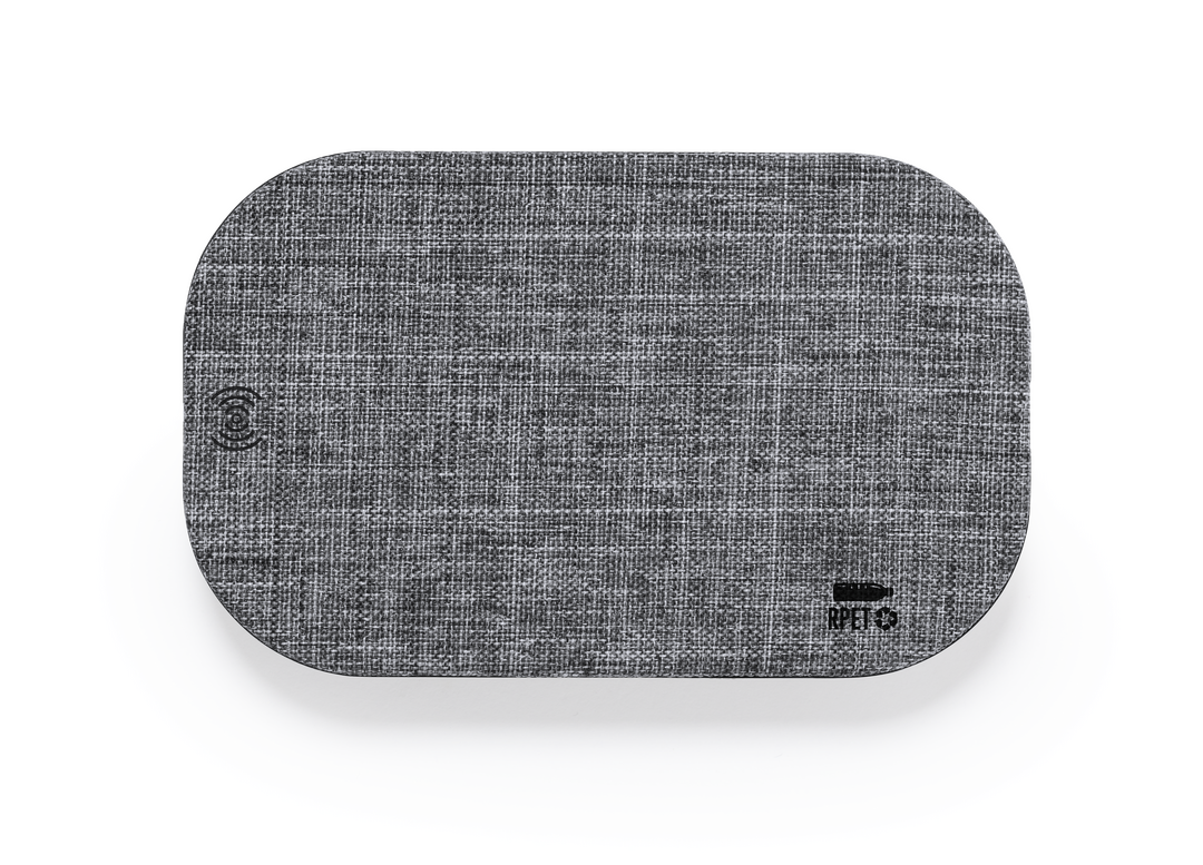 Cargador inalámbrico de línea nature, con práctico diseño ovalado y función carga inalámbrica de 10W. Fabricado en poliéster RPET, elaborado a partir de plástico reciclado, para así fomentar la reutilización de residuos plásticos y ayudar a la sostenibilidad del planeta. Cable de carga incluido, base antideslizante y compatible con dispositivos equipados con tecnología de carga inalámbrica. Presentado en atractiva caja de diseño eco. Distintivo RPET sobre el artículo.