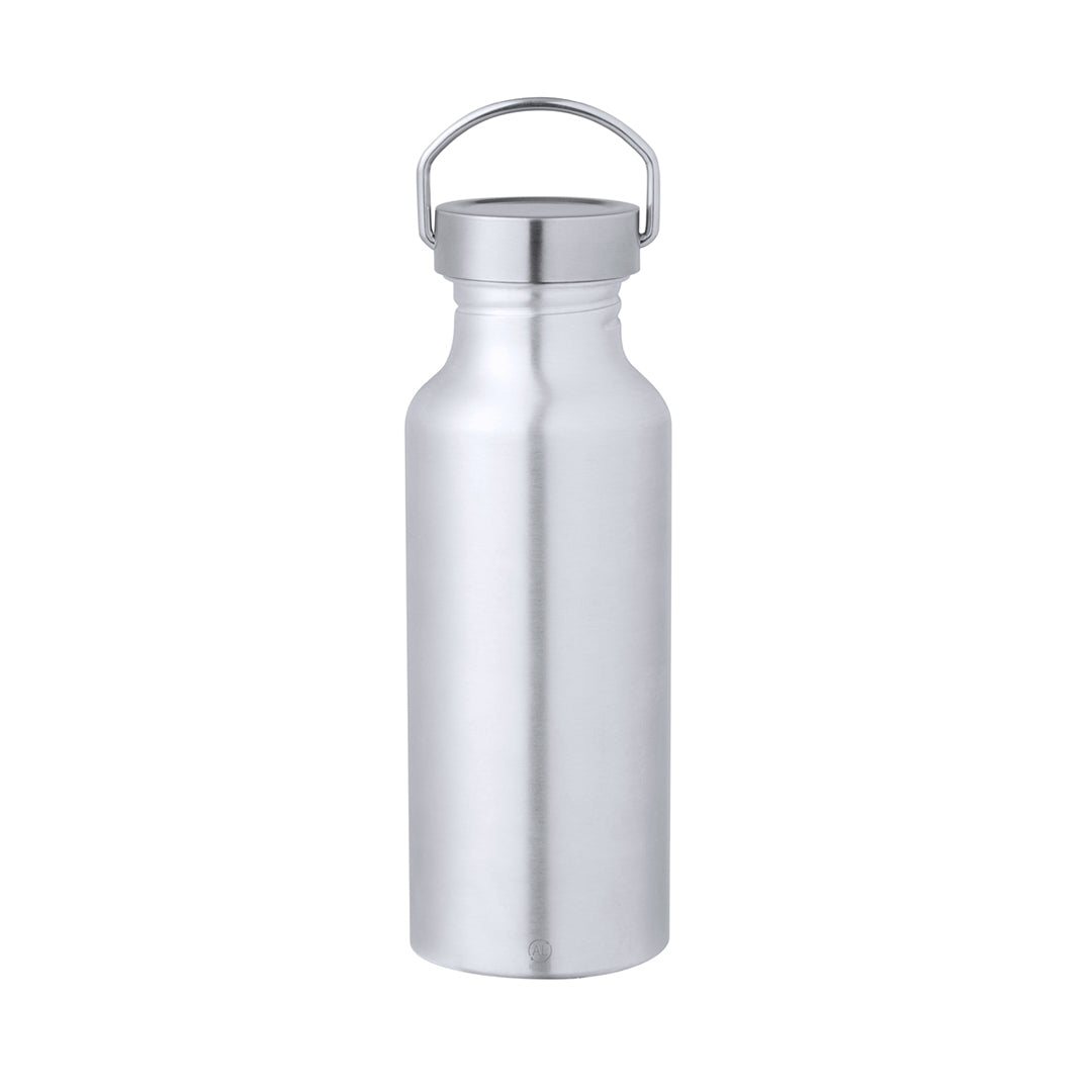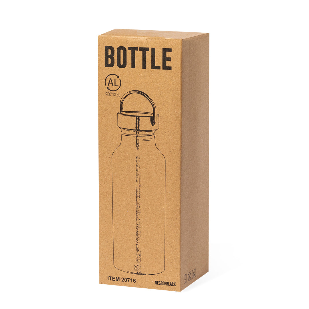 Bidón de 650 ml de capacidad, fabricado en Aluminio Reciclado de acabado brillo. Con original tapón plateado de rosca a juego y asa integrada. Disponible en variada gama de elegantes colores. Con logotipo Aluminio Reciclado, libre de BPA y presentado en caja individual de diseño kraft.El Aluminio Reciclado es un material con posibilidades de reciclaje casi infinitas, sin perder sus propiedades originales y consumiendo menos energía en este proceso.Certificación GRS (Global RecycLED Standard / Estándar de Reciclaje Global), que garantiza el origen reciclado del material usado para fabricar el producto.